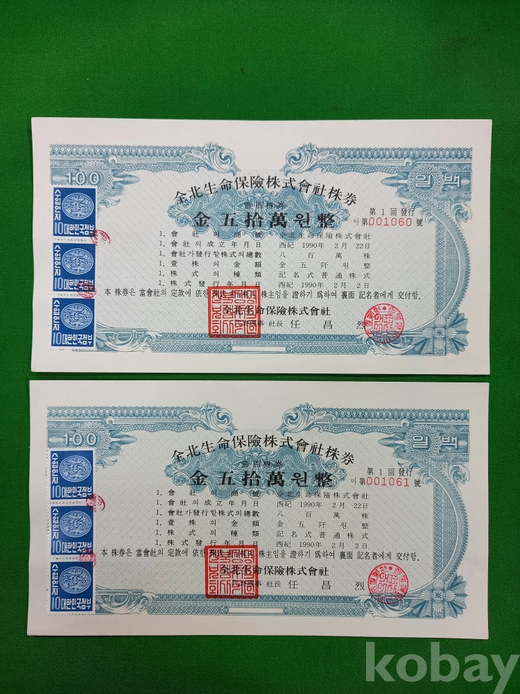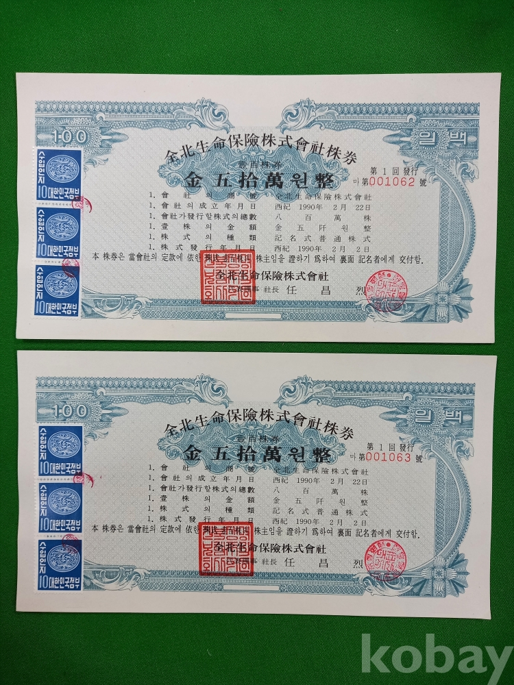 (001060 ~ 001064) 까지 연속된 일련번호 5장 입니다