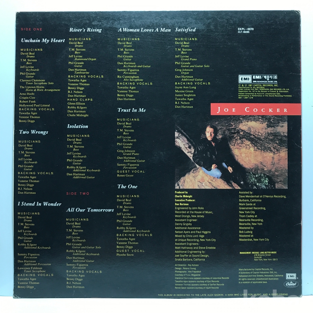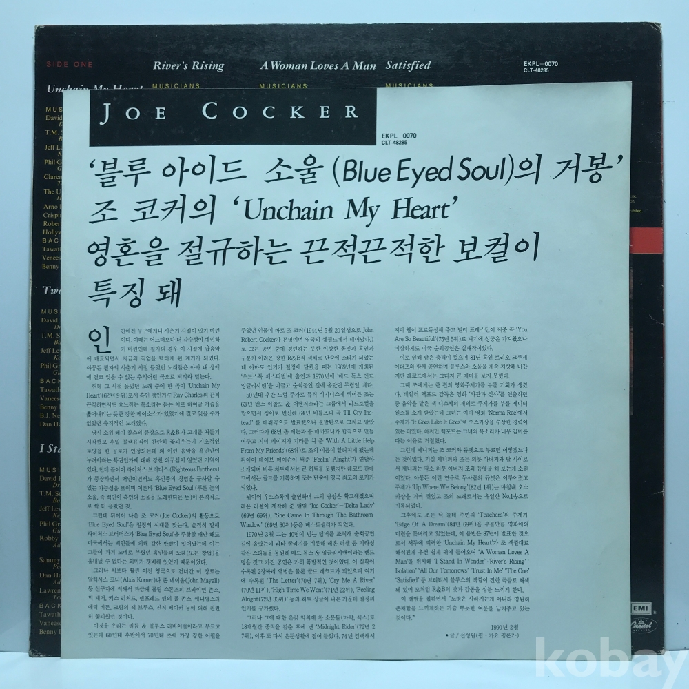 LP 83,740-121 Joe Cocker - Unchain My Heart . 자켓 EX 알판 EX 90 년 국내반