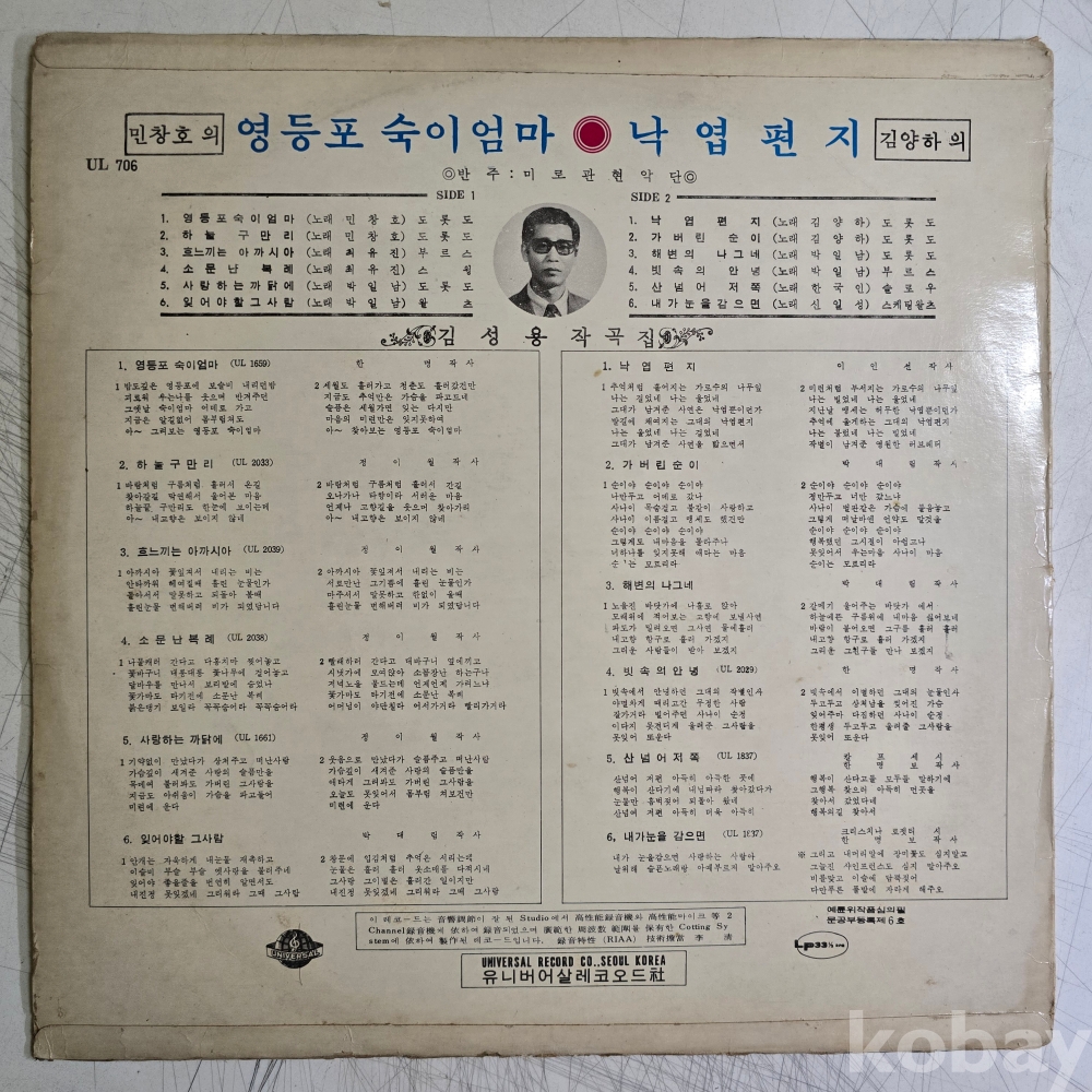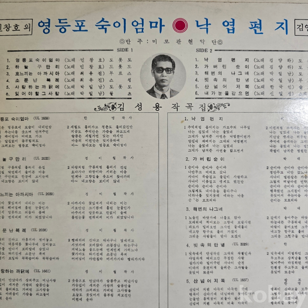 | 자켓상태 | VG : 주름, 접힘, 모서리 찢김 다수 | 음반상태 | VG : 생활 기스 다수, 가벼운 노이즈 존재 | 발매정보 | 초반 | 가사지여부 | 무 |