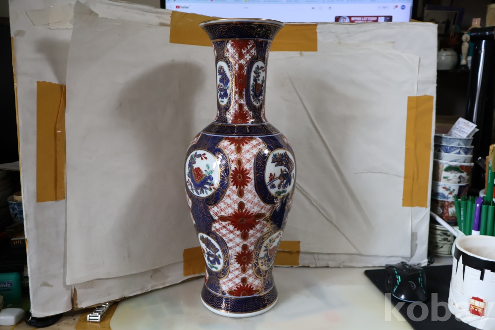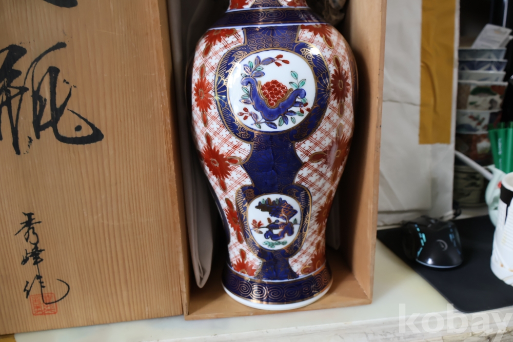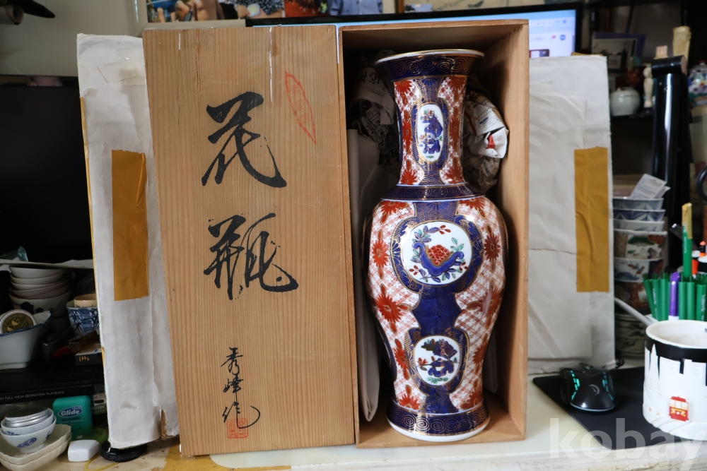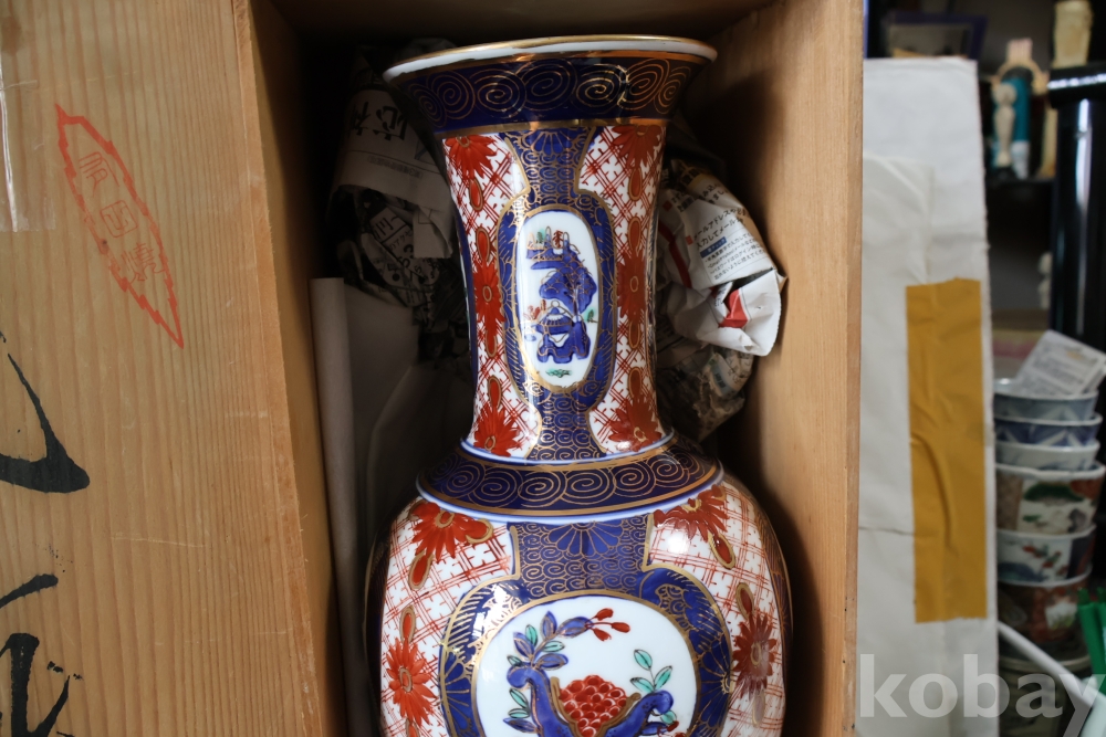 대형 골드 이마리 임니다 오리지날 상자에 보관 해온 묵직한 명품 도자기 이며 호화 찬란한 명물 임니다 상자는 세월의 흔적 테이프 등이 보임니다