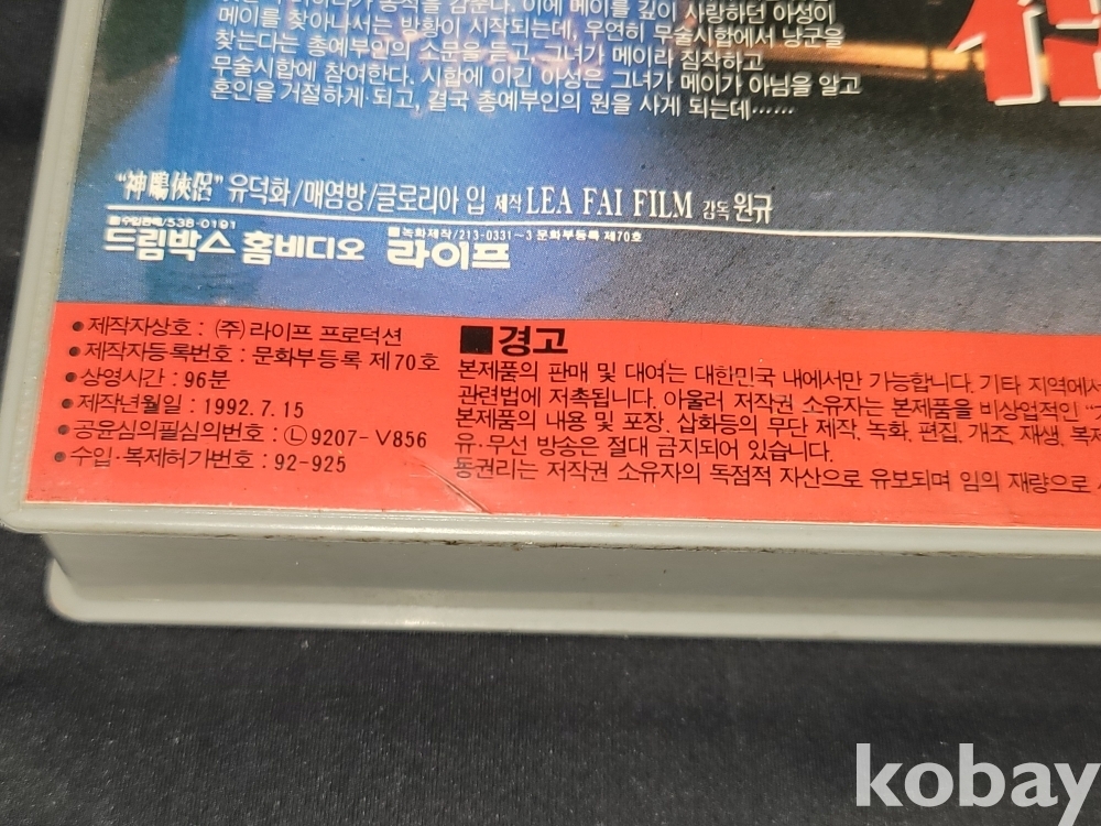 빈티지 세월 감이 느껴지는 1992년 제작 유덕화 신조협려, 1991년 제작 루안살성 영화 비디오테이프 2종 일괄입니다.