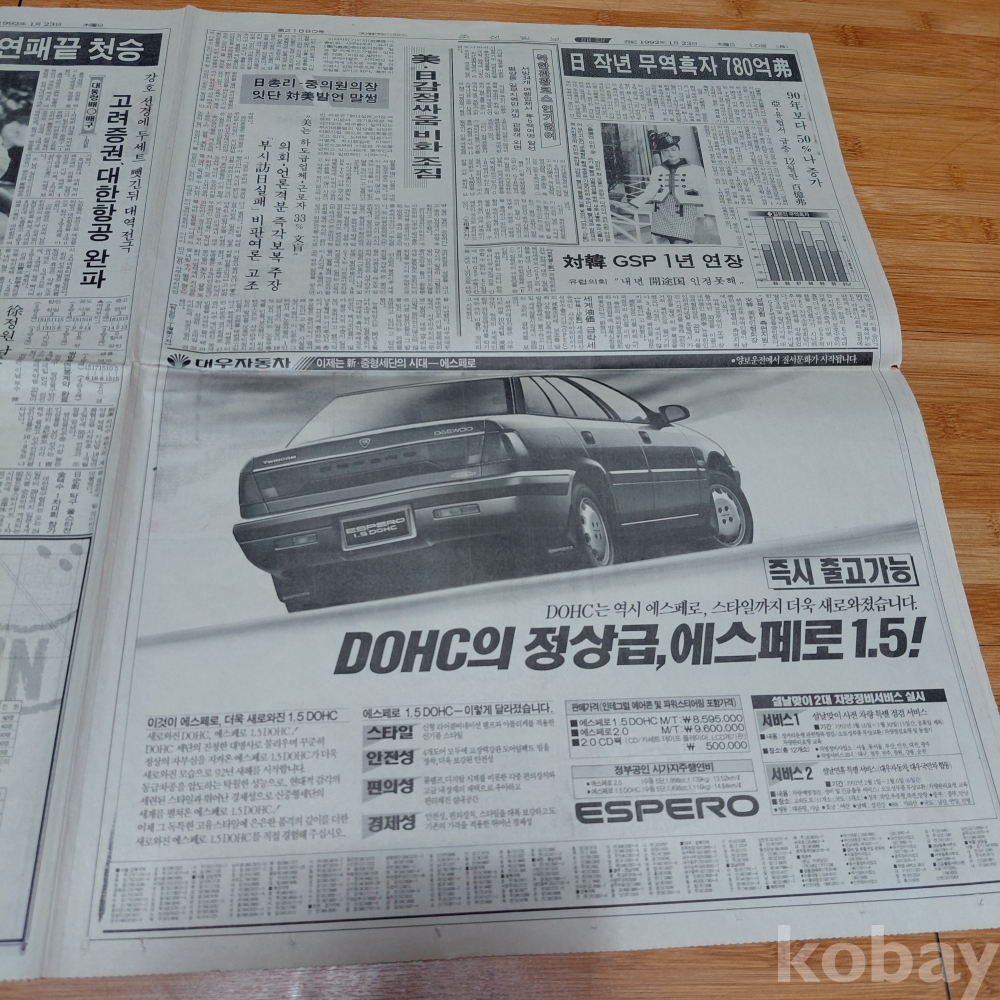 대우 에스페로 승용차 광고 92년1월23일 올려드립니다