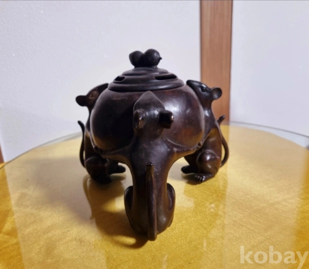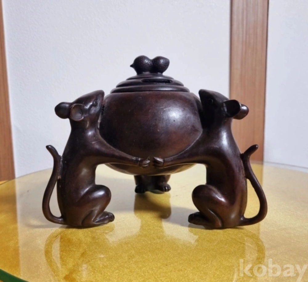 특이한 쥐 3마리의 적동 향로 ㆍ