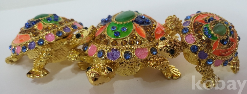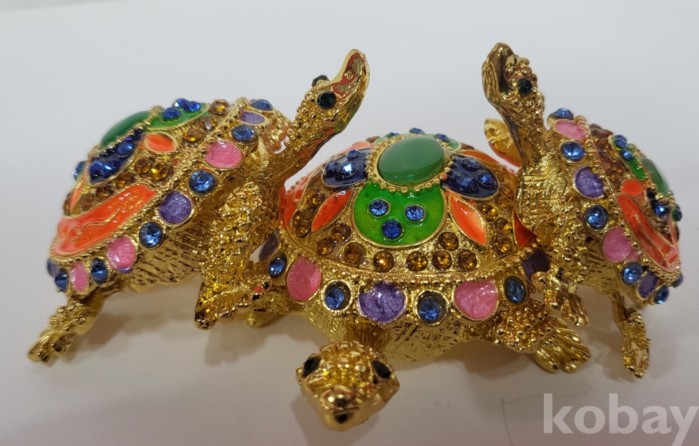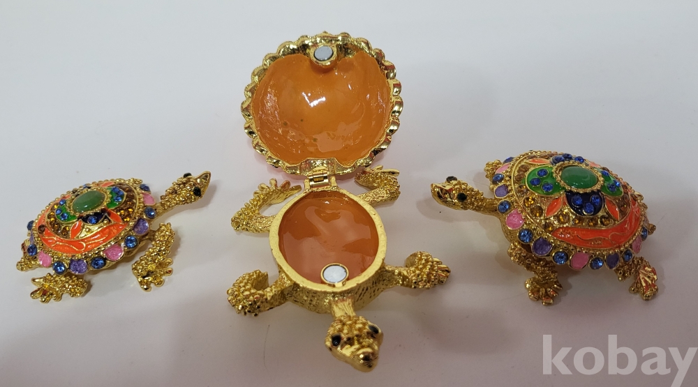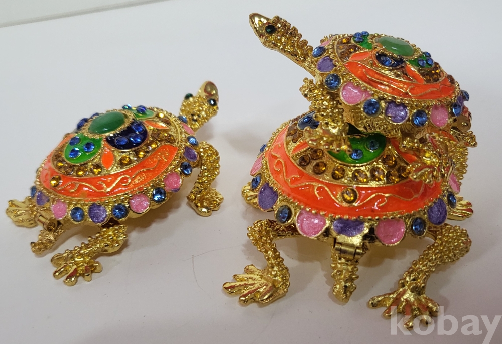 황동(黃銅)으로 완성된 거북이 형상 보석함입니다,