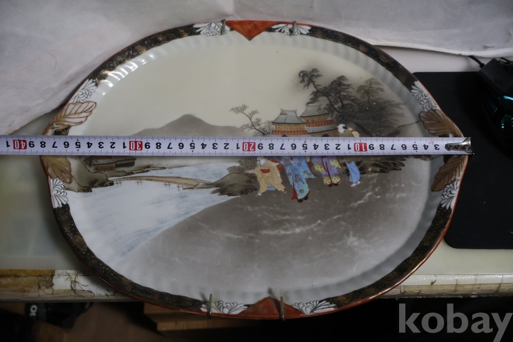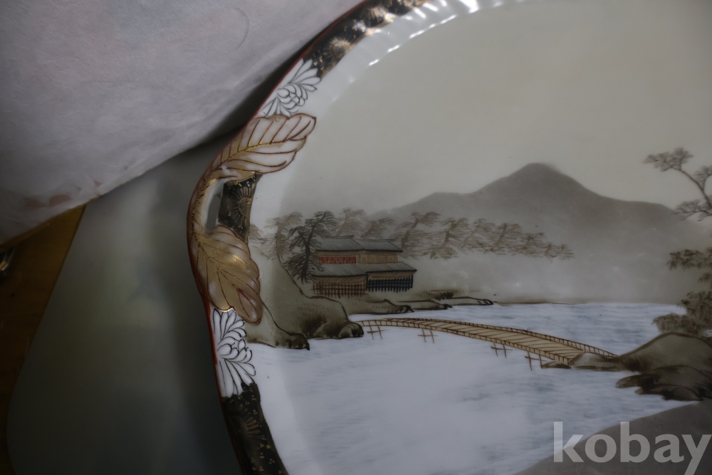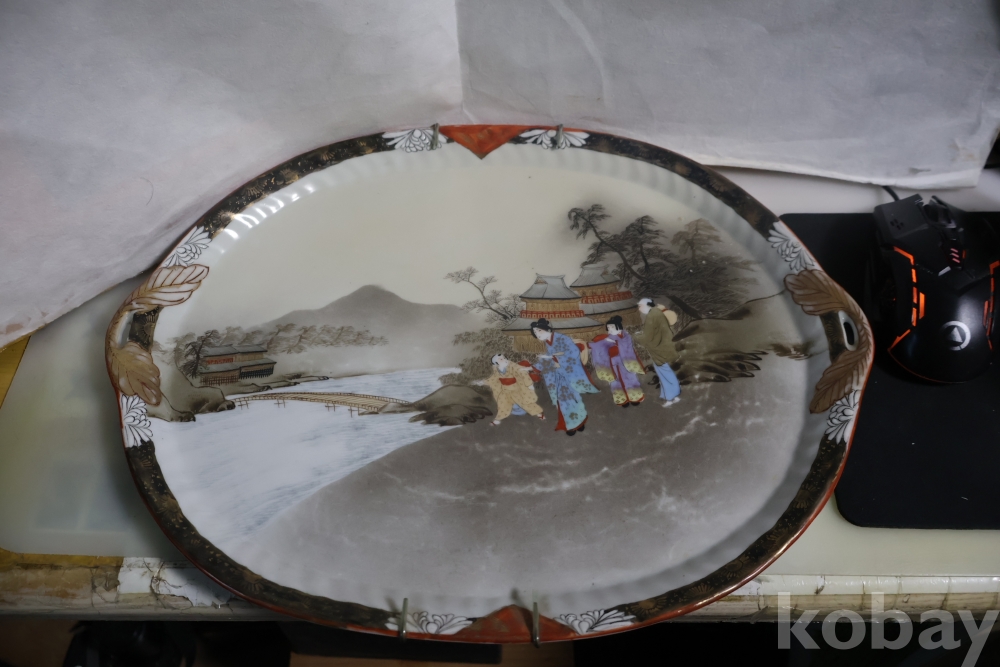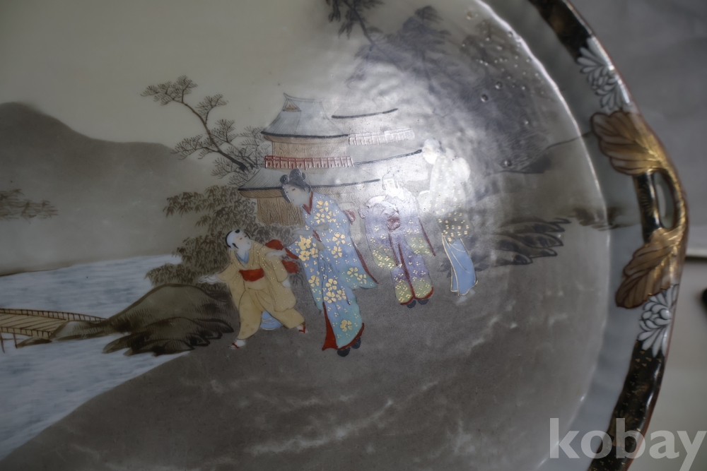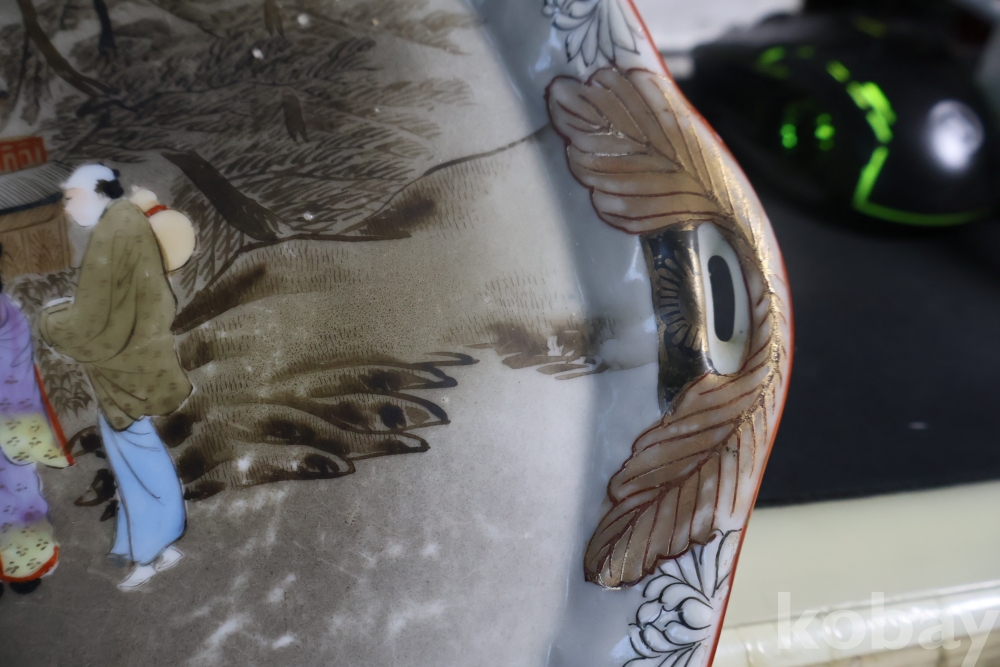 명치기 혹은 1920대 구미 유럽 수출 도자기 임니다 대형 사이즈를 가진 일본 명품 임니다 철사의 행거가 보임니다//