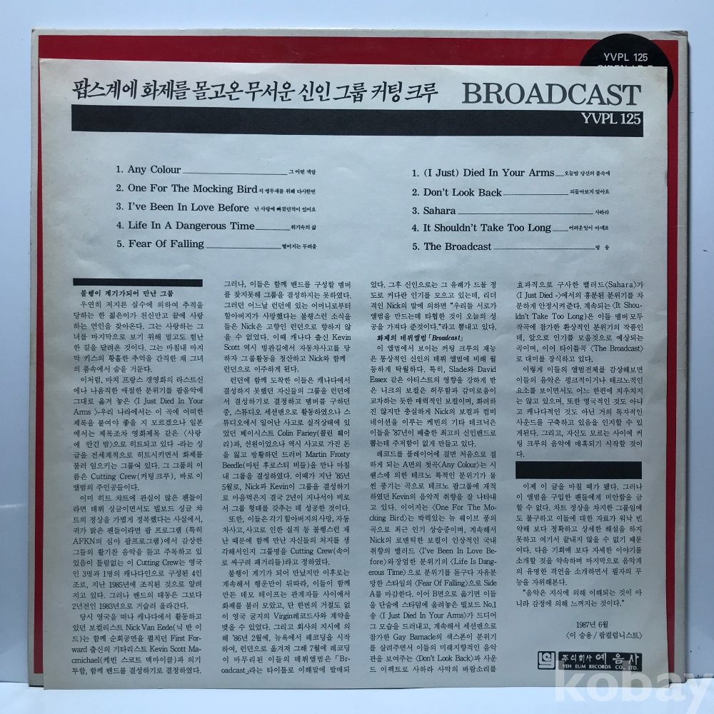 LP 27,555-279 Cutting Crew 자켓 EX+ 알판 EX+ 87 년 국내반