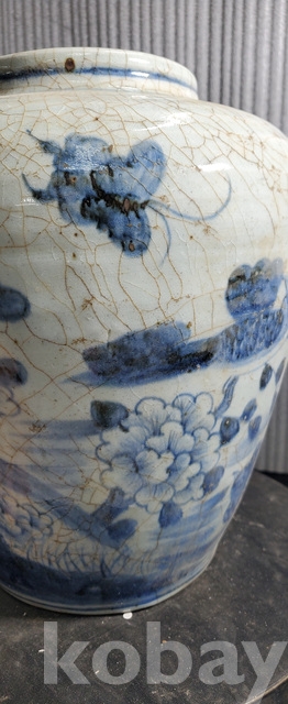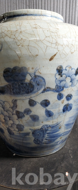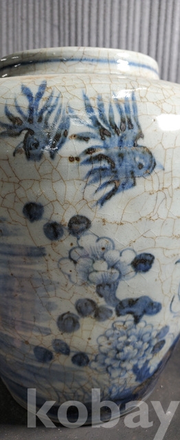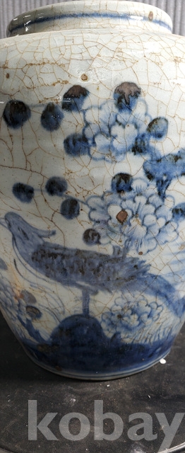 다-154.오래된 수작업으로만들고 도공이그린목단 화조문 청화백자항아리