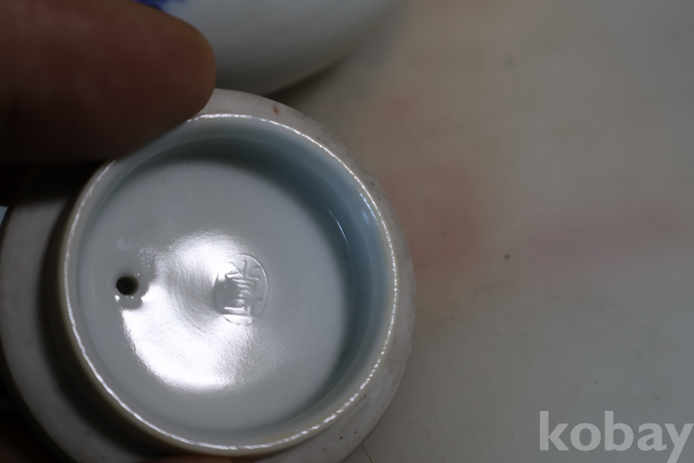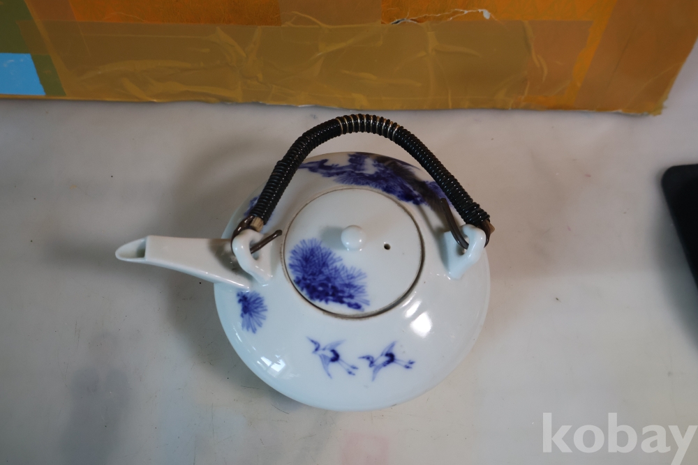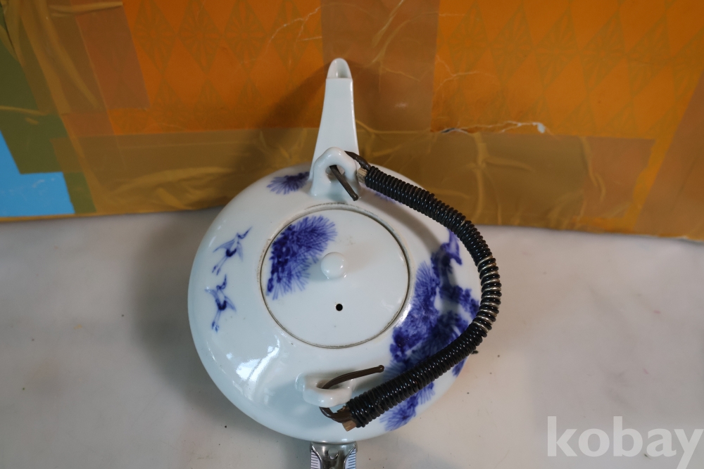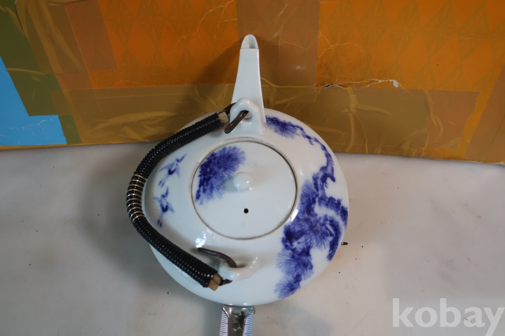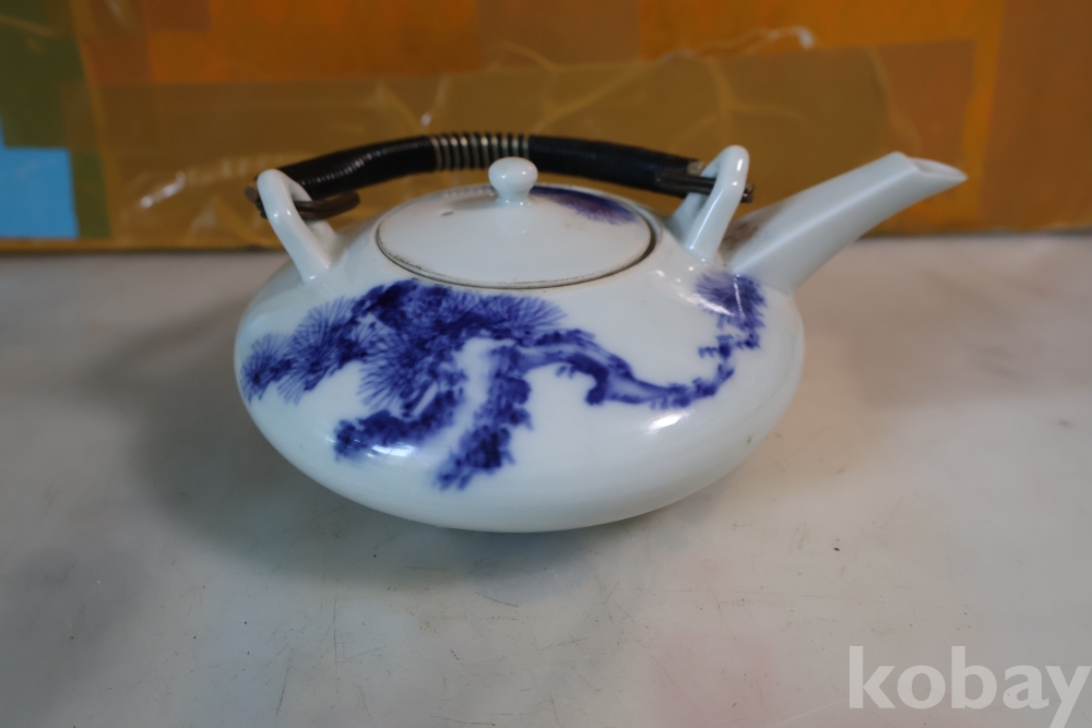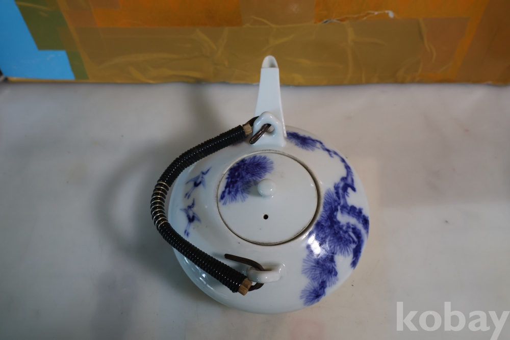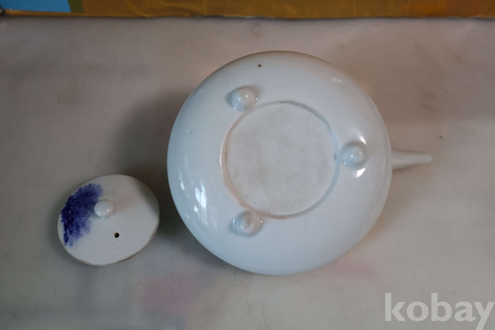 청화백자 주전자 임니다 뚜겅에는 도공의 낙관을 가진 명품 이며 무개감을 가진 명품 주전자 임니다