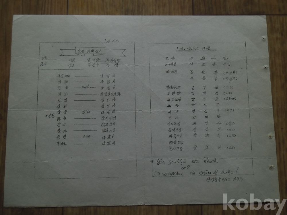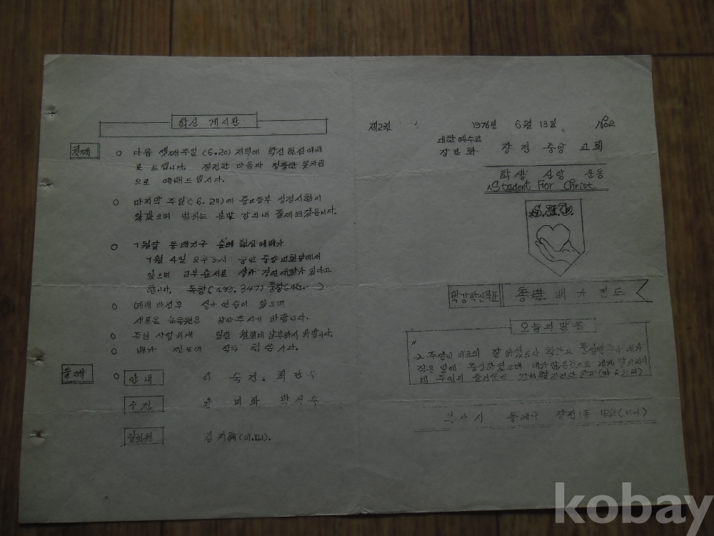 1976년 아산 온양삼일교회 청장년면려회 주보
