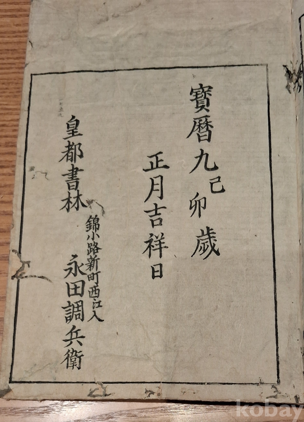 한 것을 본매물은 寶曆 9년(1759년)에 중간한 책