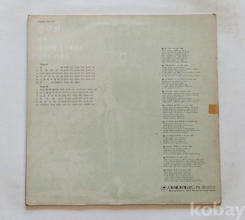 | 자켓상태 | EX : 약간의 마모, 모서리 찢김 존재 | 음반상태 | EX : 재생에 영향 없는 가벼운 기스 존재 | 발매정보 | 알수없음 | 가사지여부 | 무 |