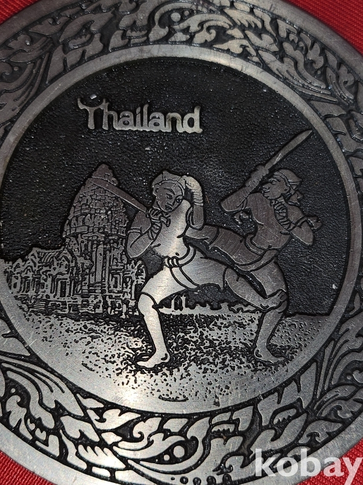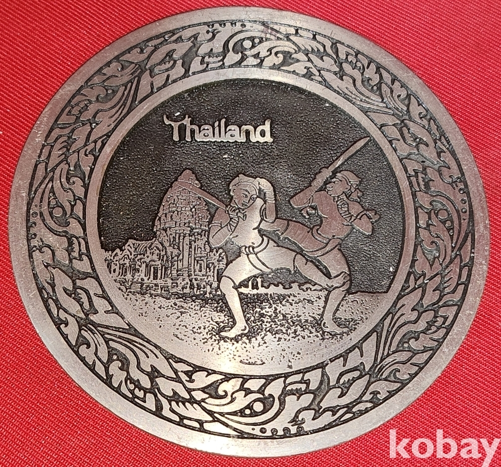 타일랜드 표기가 보이는 성벽과 무사도 문양 메달입니다,