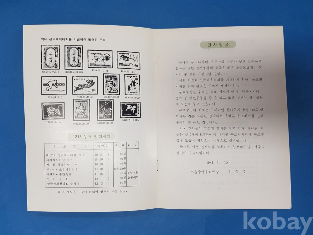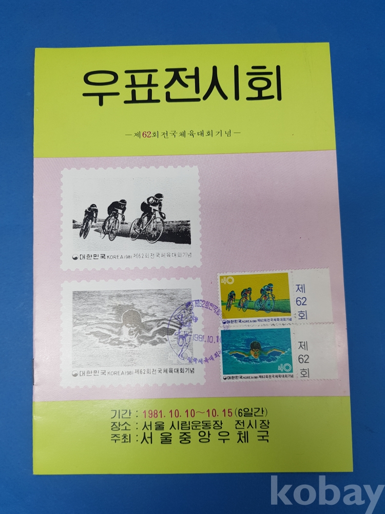 **** 1981년 제62회전국체육대회기념 우표전시회 팜플렛*우표첩부 기념인