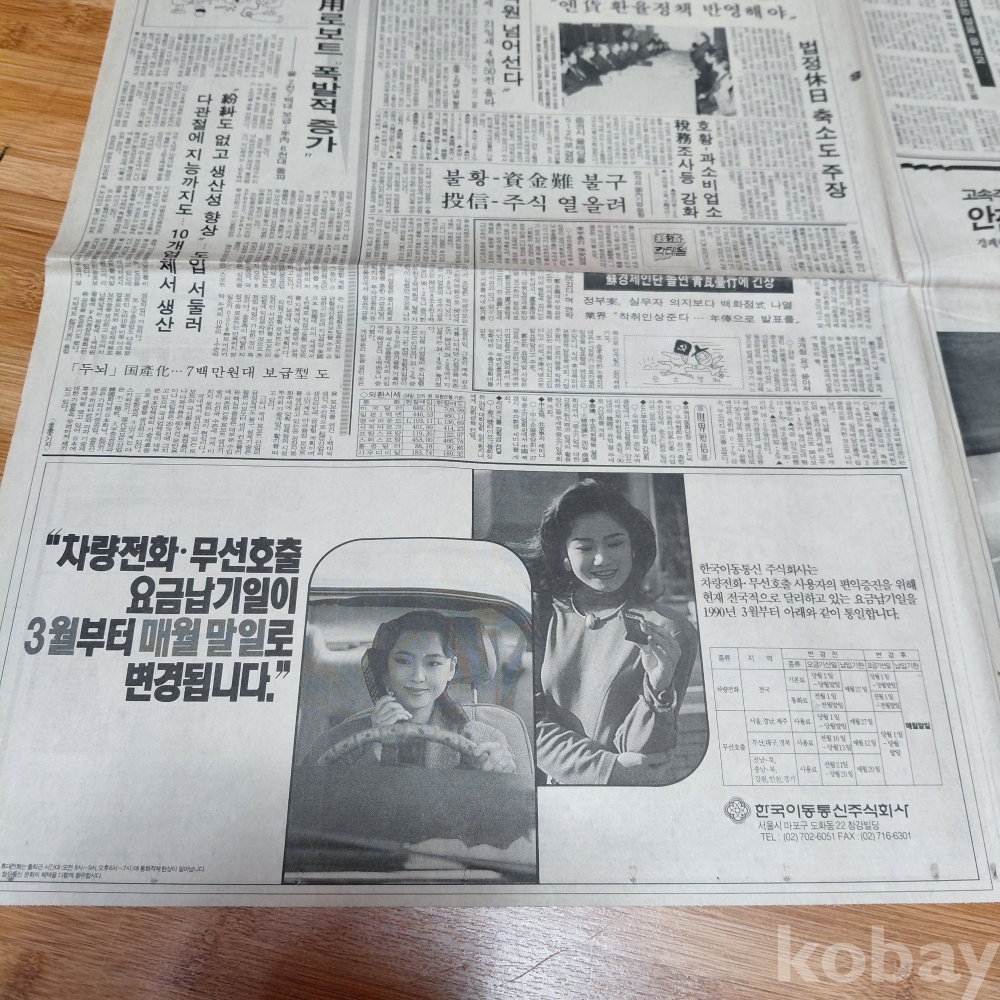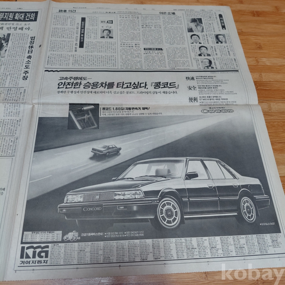 기아자동차 콩코드 승용차 ㆍ한국이동통신 광고 조선 90년3월25일 올려드립니다