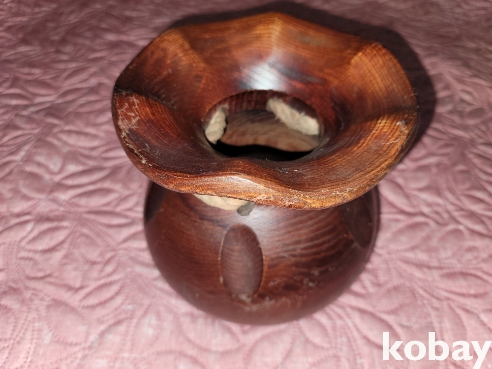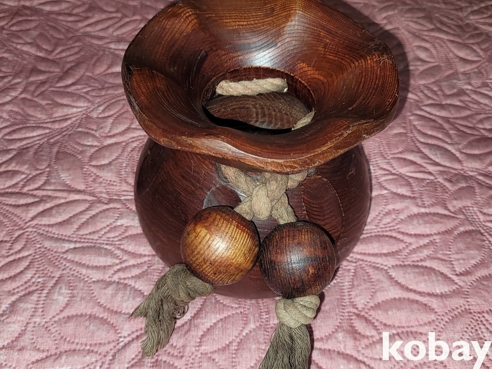 빈티지 상당히 묵직한 복주머니 모양 나무 장식입니다.