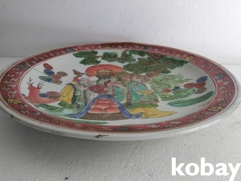 오채색으로 인물도안이 있는 대형 접시 도자기 입니다.