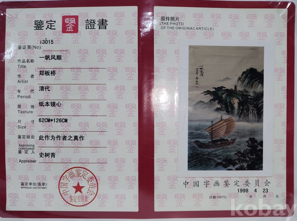 감정서(鑑定證書)가 함께하는 중국화가 범증(范曾) 일범(一帆畵)입니다,