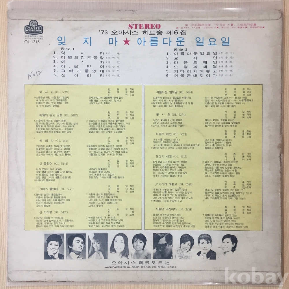 73년 오아시스히트송 제6집 - 잊지마/아름다운 일요일