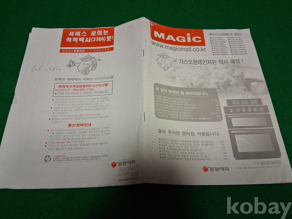 오래된 동양매직/매직가스오븐레인지 설명서