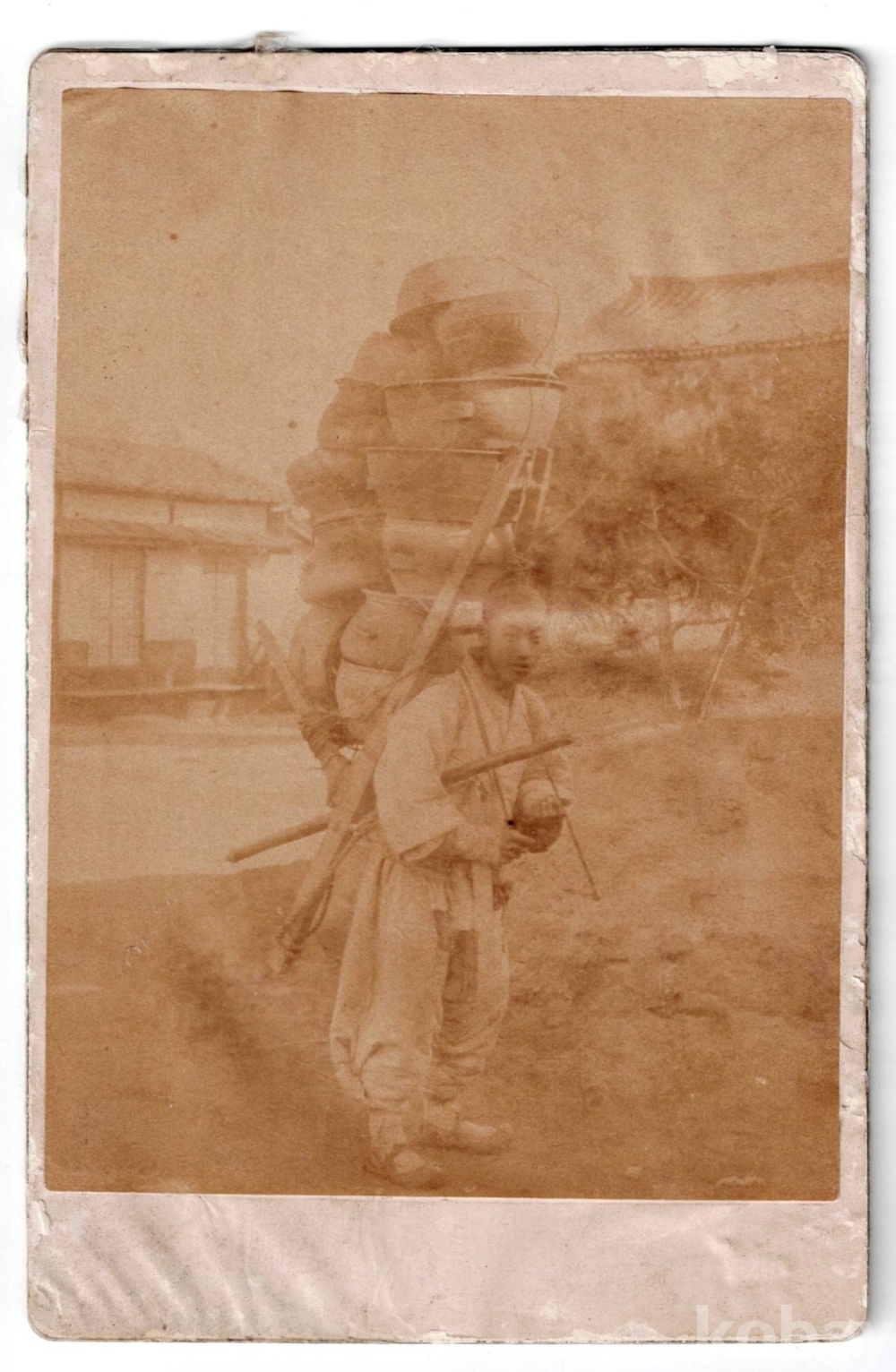 조선말 일본 계란지에 인화된 조선 노동자 흑백 사진으로