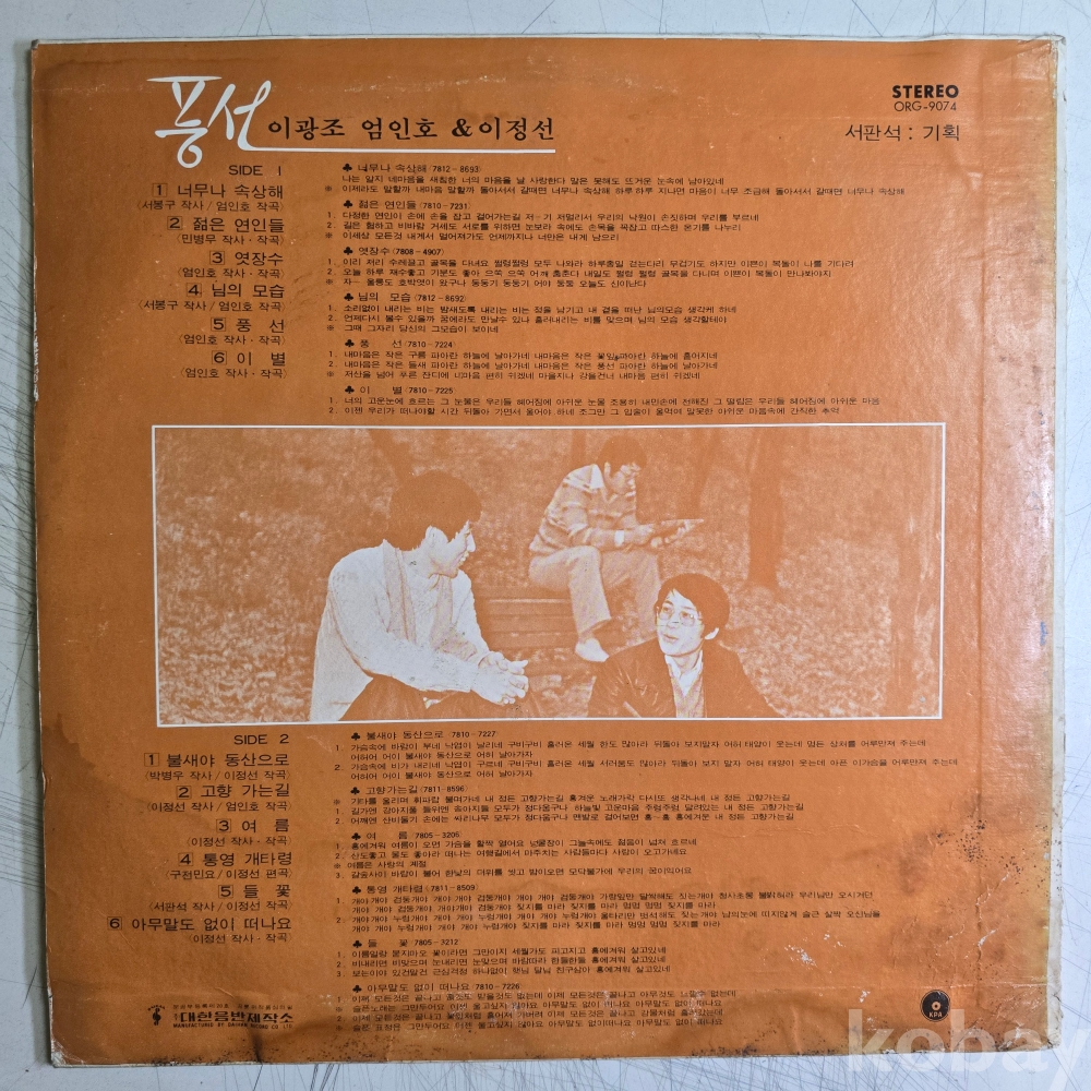 | 자켓상태 | VG : 주름, 접힘, 모서리 찢김 다수 | 음반상태 | VG : 생활 기스 다수, 가벼운 노이즈 존재 | 발매정보 | 초반 | 가사지여부 | 무 |