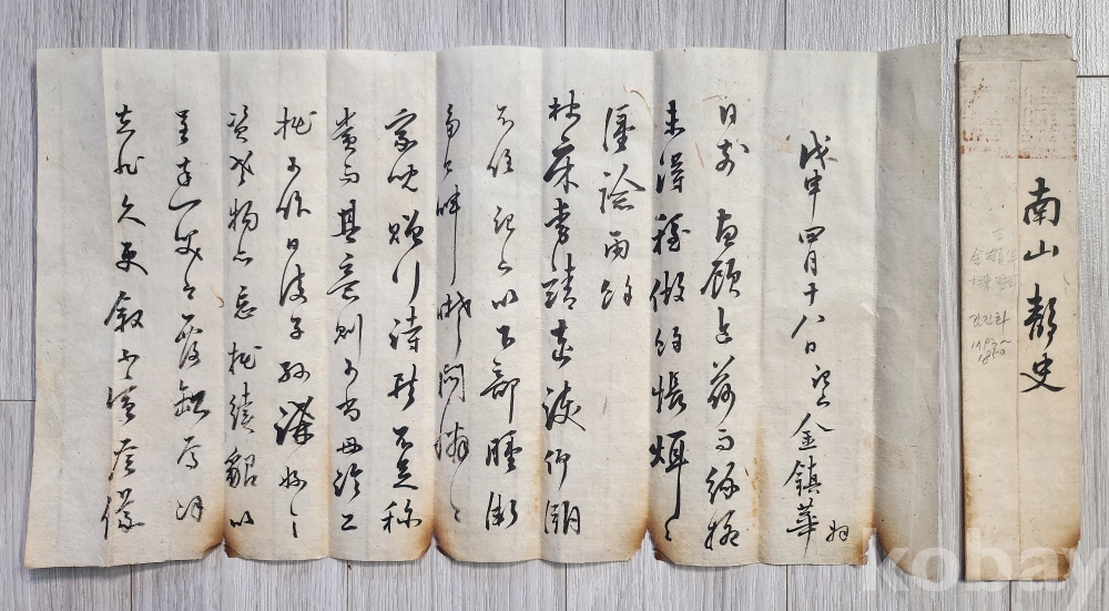 조선시대 김진화 간찰 1793-1850년 (의성현령지냄) 조선시대 김만중(구운몽.사씨남정기)의아들 김진화간찰 입니다 김만중의 아들이자 이은상의 외손 입니다 동리집을 김진화간행함.( 동리집은 이은상의 사위 김만중이 시문을정리하여 보관하고 있었는데 아버지 김만중에게 물려받아 김진화가 의성현령 재임중 동리집을 간행하게 되었음) 진품보증 합니다