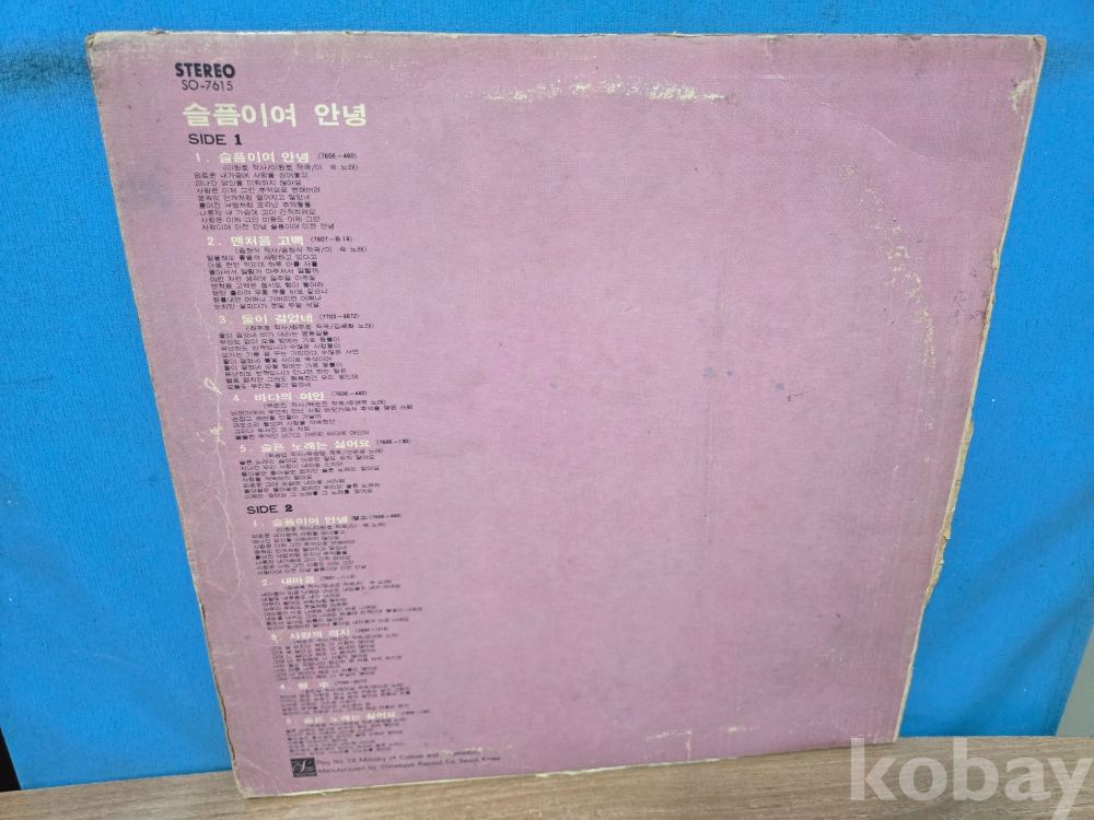 | 자켓상태 | EX : 약간의 마모, 모서리 찢김 존재 | 음반상태 | EX : 재생에 영향 없는 가벼운 기스 존재 | 발매정보 | 초반 | 가사지여부 | 무 |