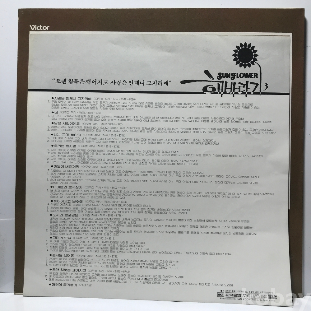 LP LP 1-20-8 해바라기 - 3집 (내 마음의 보석 상자 / 사랑은 언제나 그 자리에) . 자켓 EX+ 알판 EX 86 년 국내반