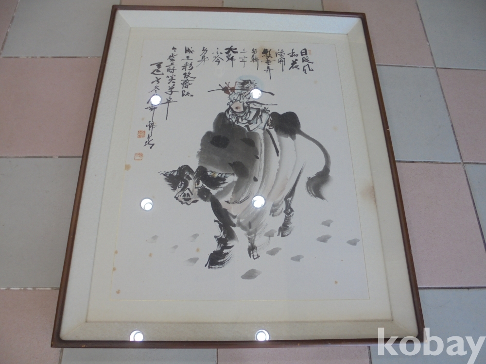 소와 목동이 범상치않은 수준높은 그림으로 화제는연구대상이며 금천 중견화가로 정감이가는 피리부는 소와목동 유명한 그림액자