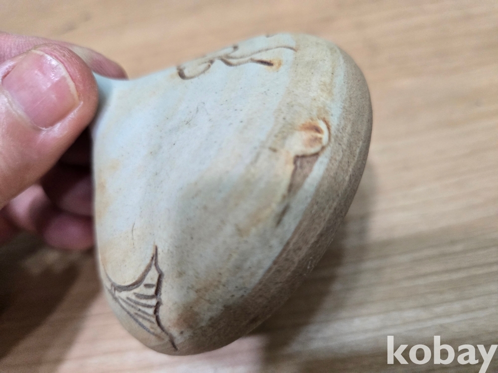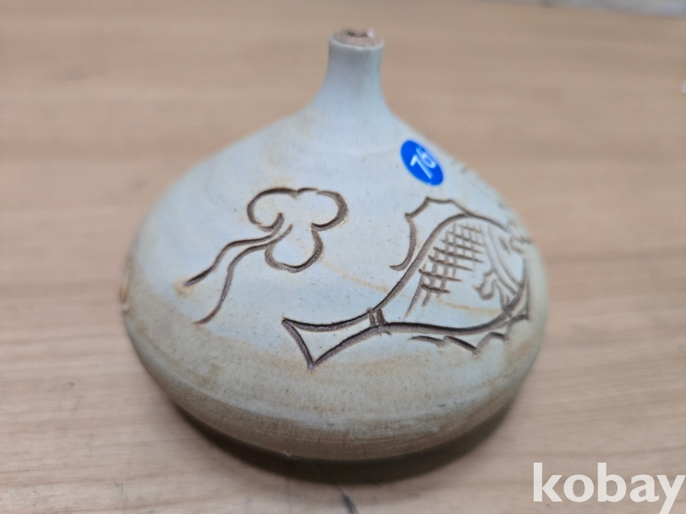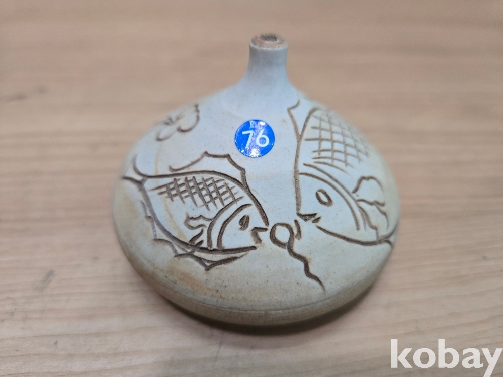 물고기 문양이 음각으로 표현된 입이 작은 도자기 입니다.