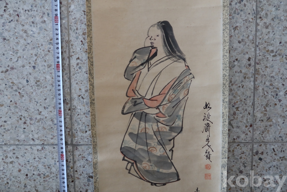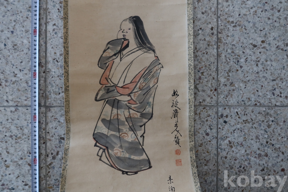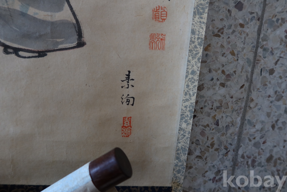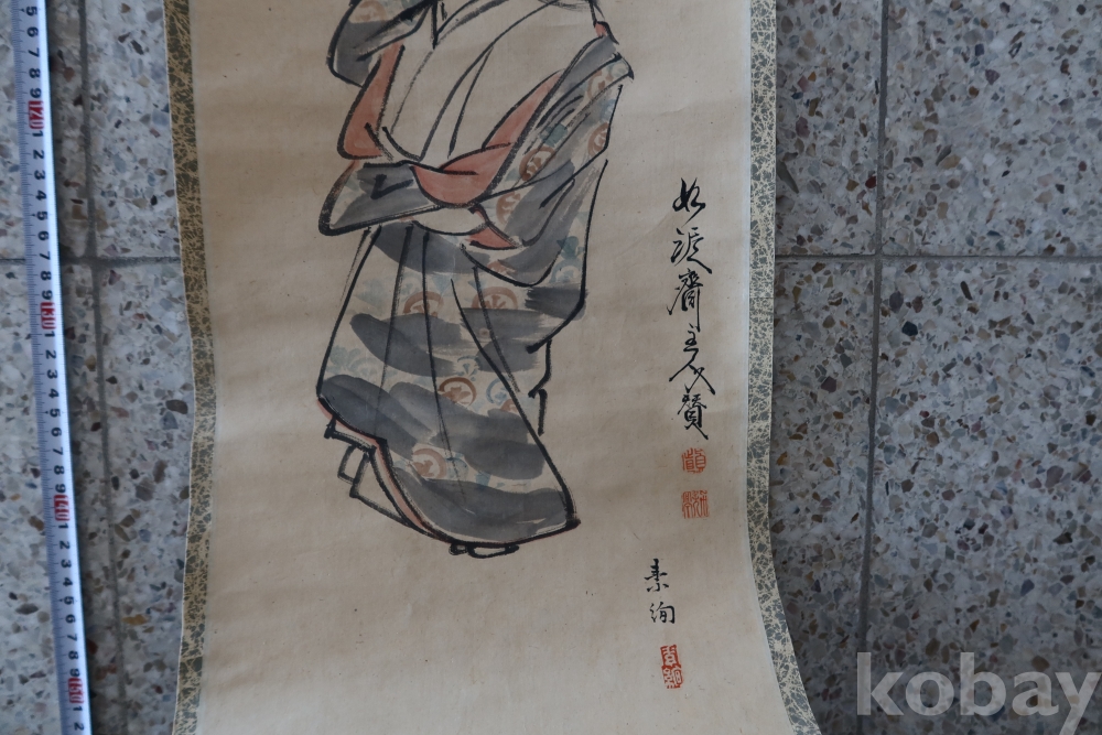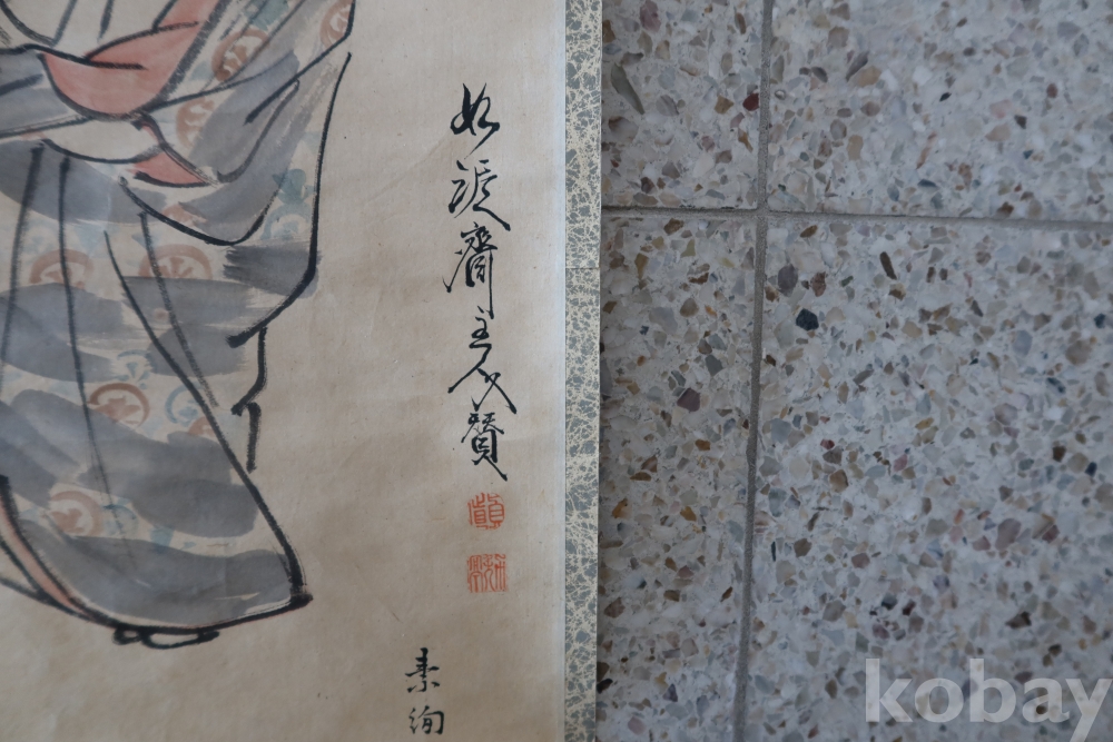 고서화 임니다 화가의 이력 참조 15번 사진 마루야마 오쿠의 수제자 이며 복을 준 다는 오후쿠 임니다 족자는 위에 부분에 흔적이 보이는 명화 임니다