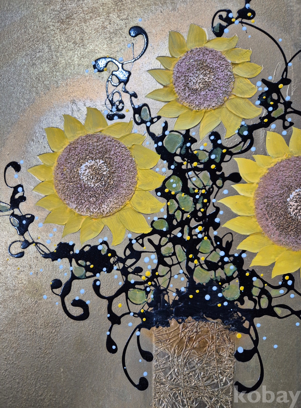 독특한 기법으로 질감 두텁고 색채감 좋게 잘 그려진 10호 해바라기 유화 작품'이오니 작품 이미지상