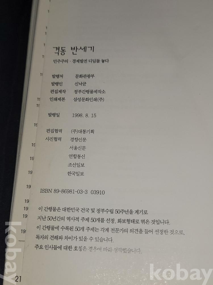 빈티지 1998년 문화관광부 발행 격동 반세기 화보 책입니다.