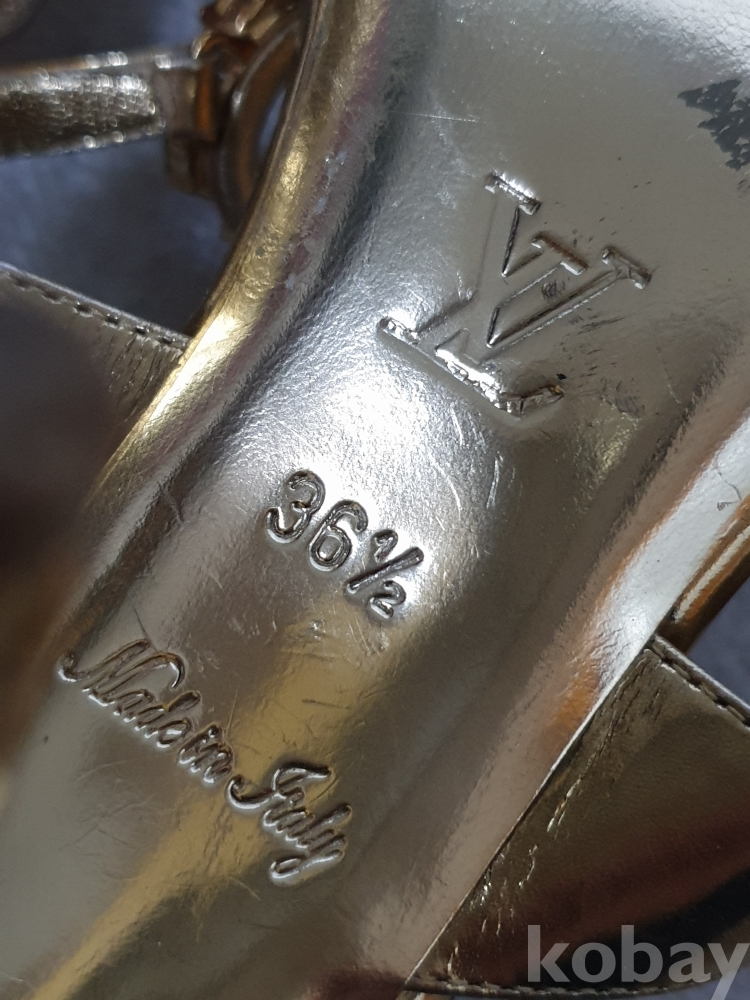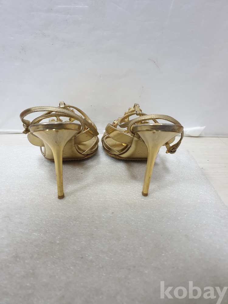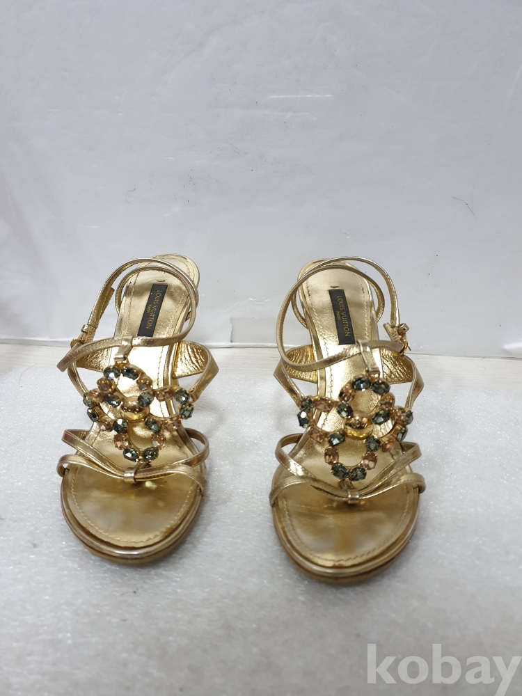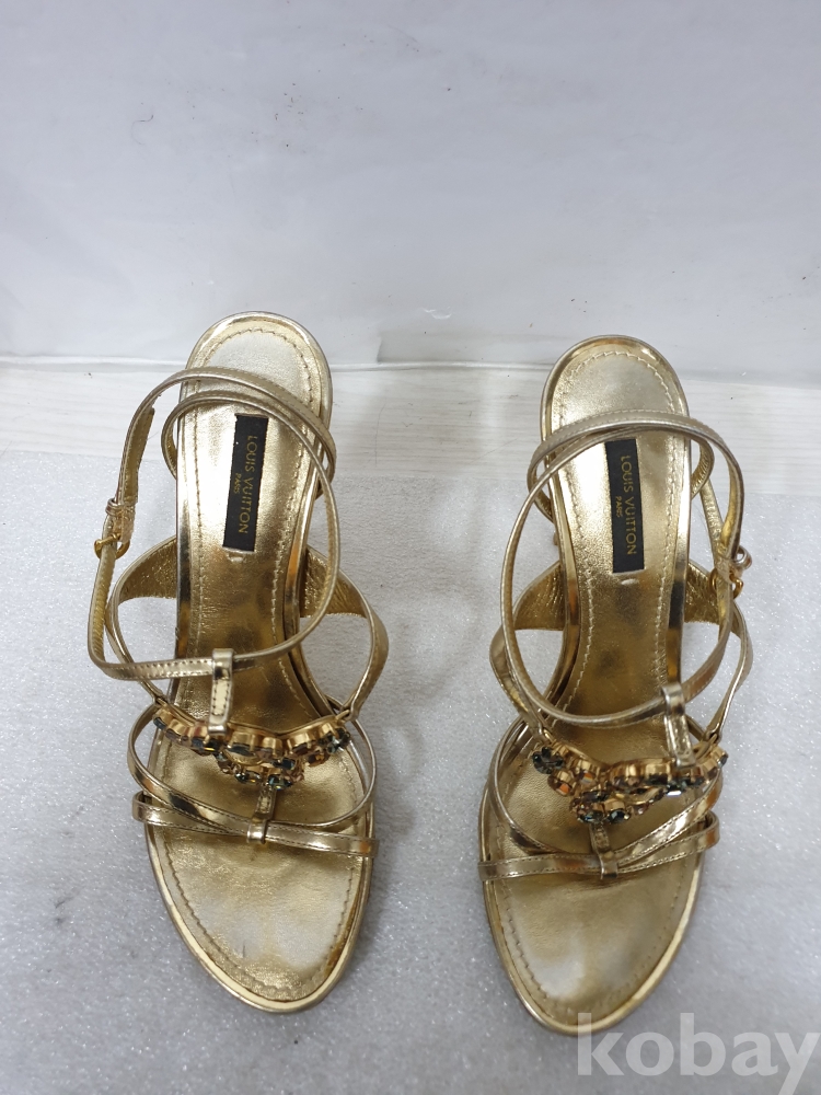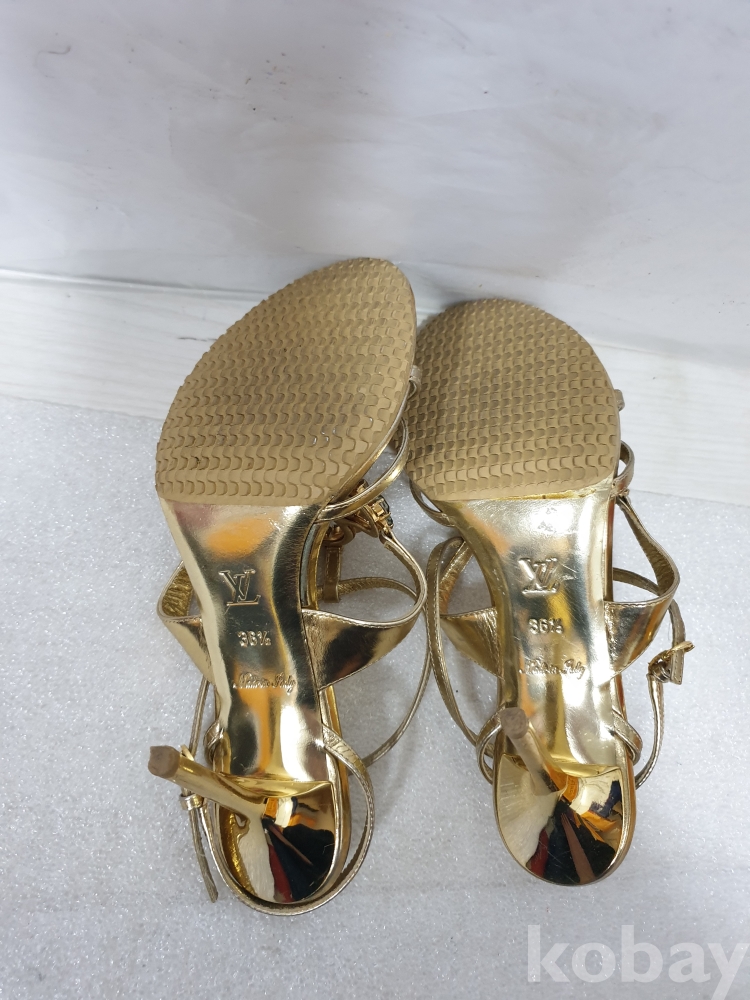 {천원경매} 2-0256 루이비통 금색 여성 샌들 (36½. 굽 9cm, 정품확인불가)