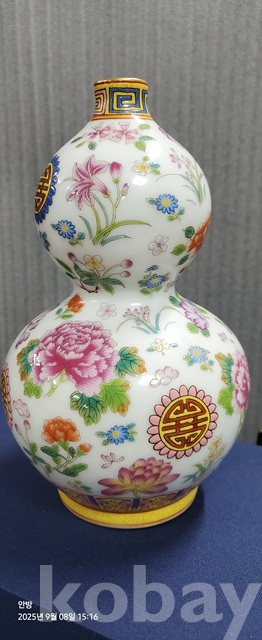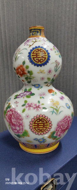 h-67.고급상자에담긴 옹정년제 목단문황실도자기호루병