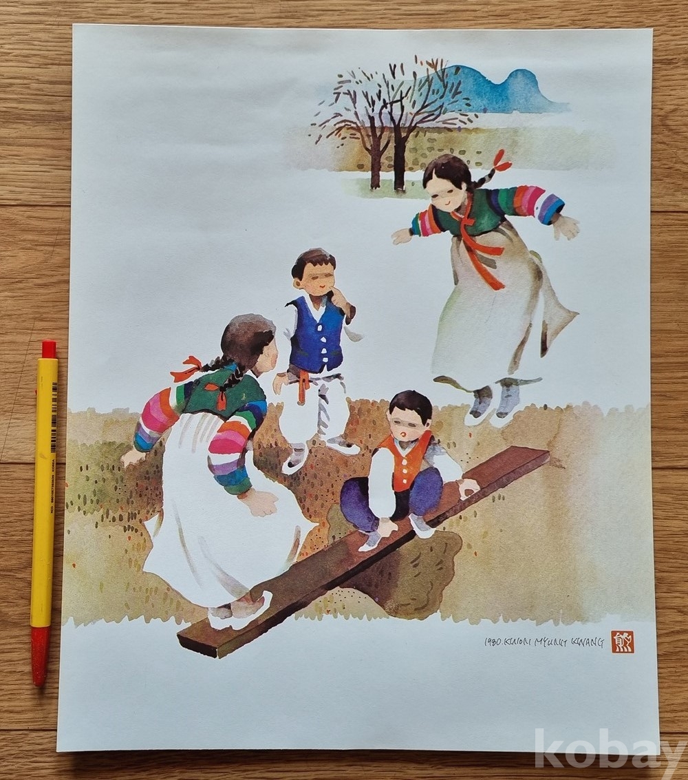 K-13 / 풍속화. 동화 그림삽화 (1979년 권명광 서명 낙관) 수채화풍 (인쇄본)