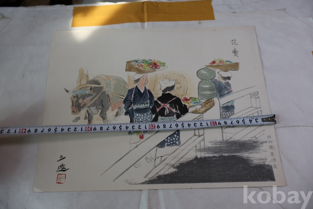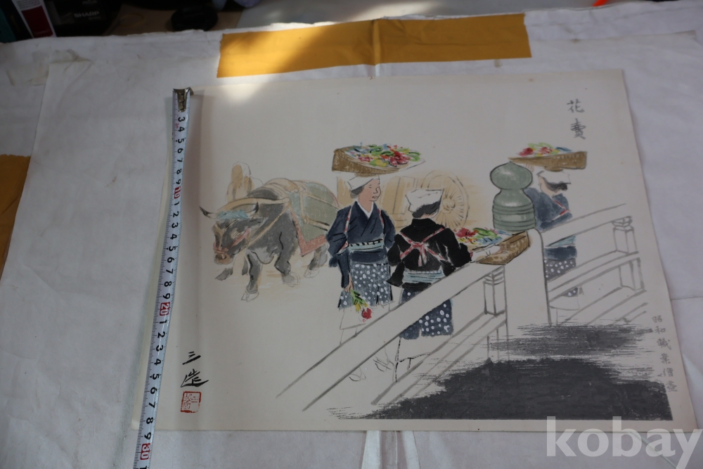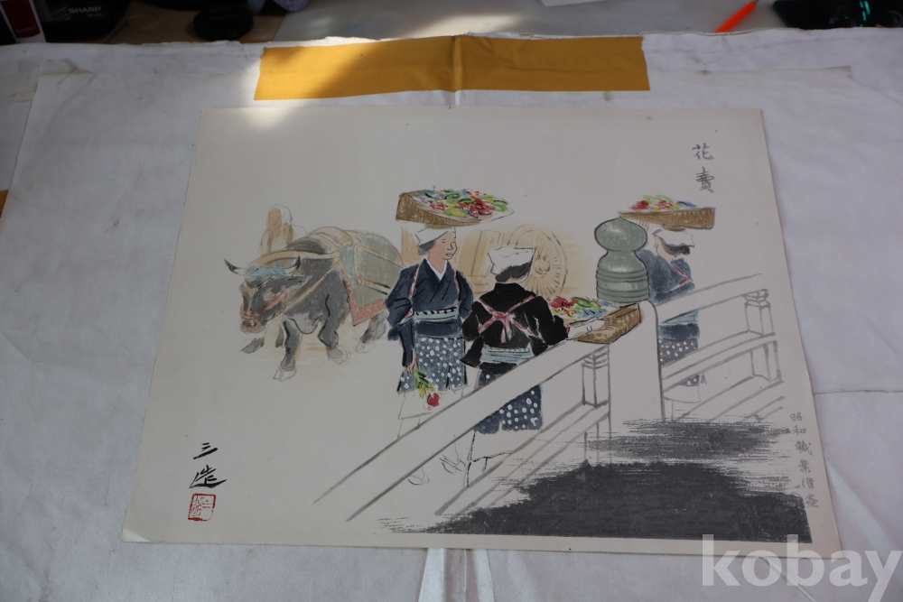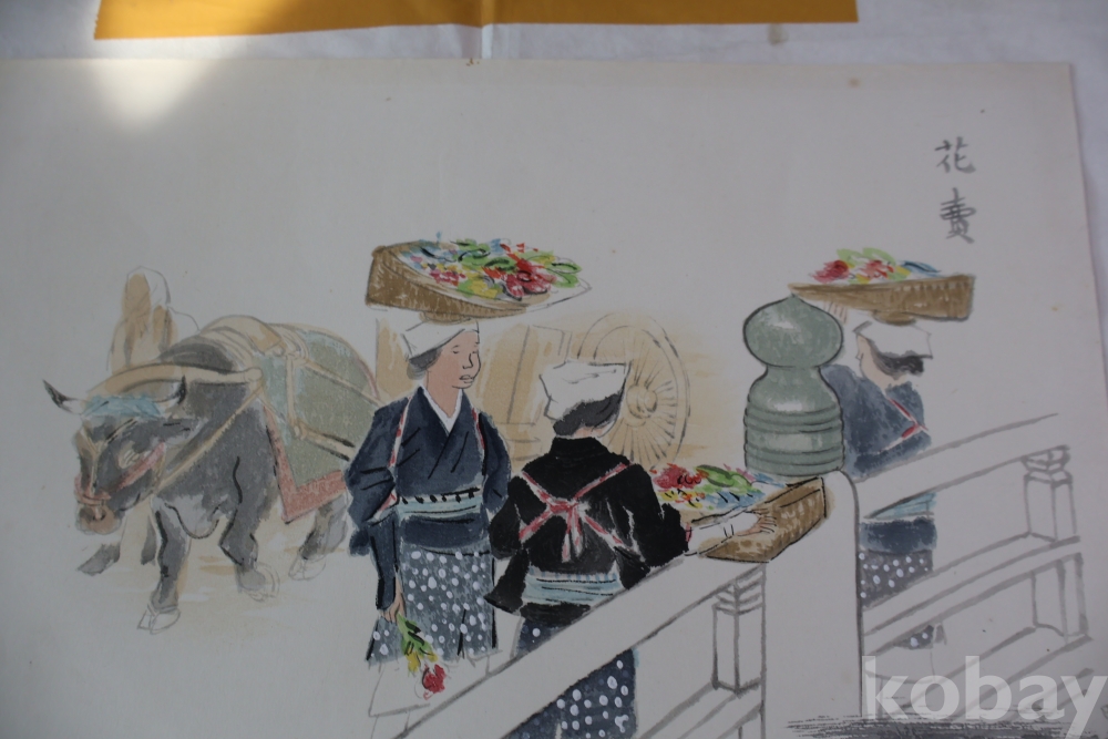 일본 현대 목판화의 대가 와다 산조의1883ㅡ1968 꽃 파는 여인 임니다 당대의 명작 임니다 사진 참조 하세요