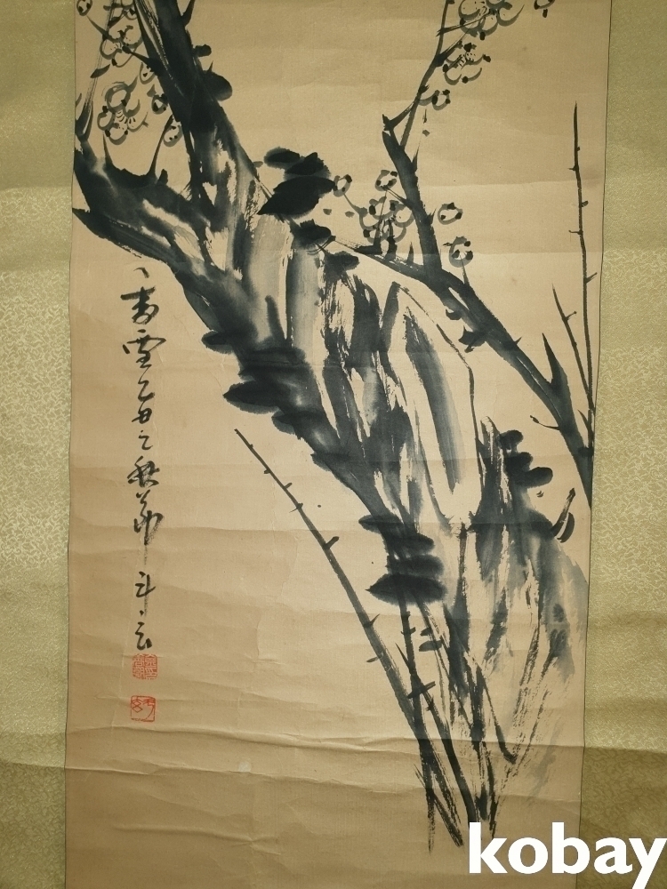 유명화가 작품으로 보이는 종이에 그린 수묵화 족자입니다.