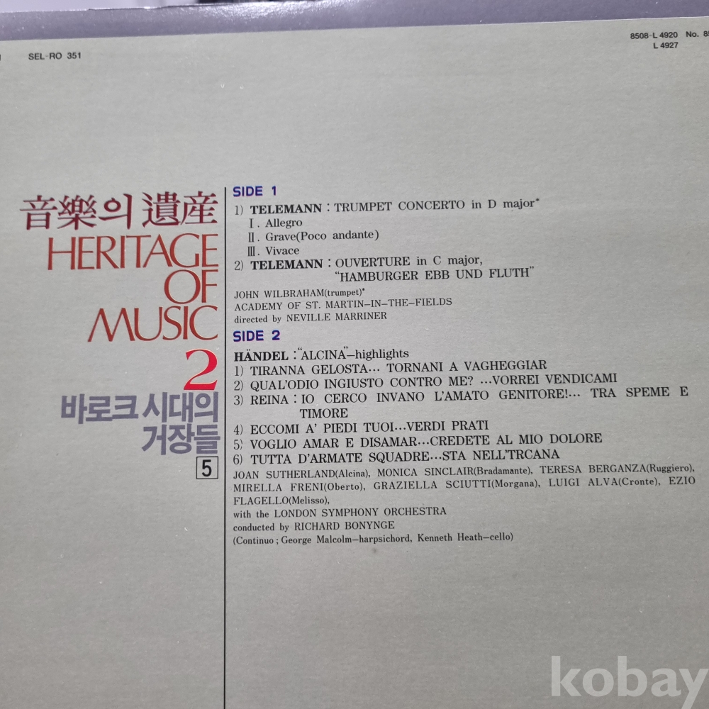 음악의유산 2 [바로크 시대의 거장들] 6LP, 중앙일보사, DECCA 라이센스 박스반