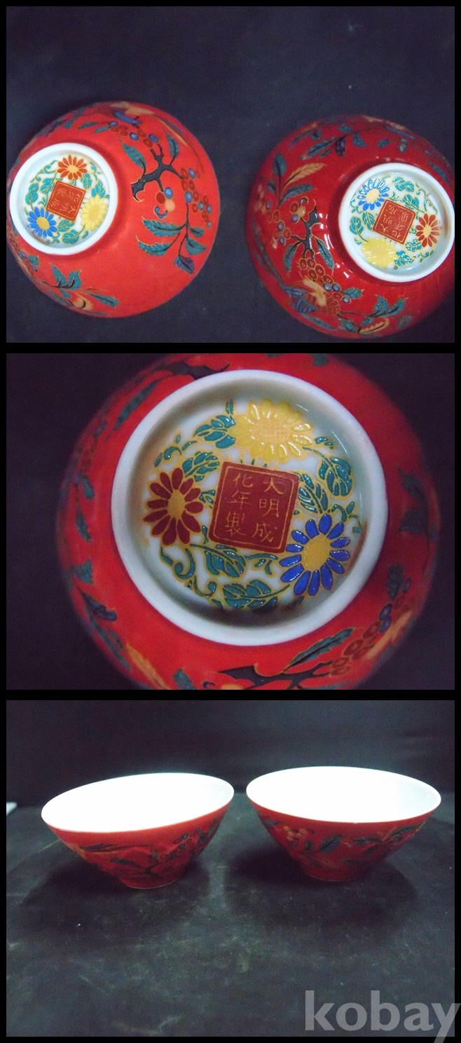e-75.입체감이있는 금채대명성화년제 연화문 조각이있는화조문배