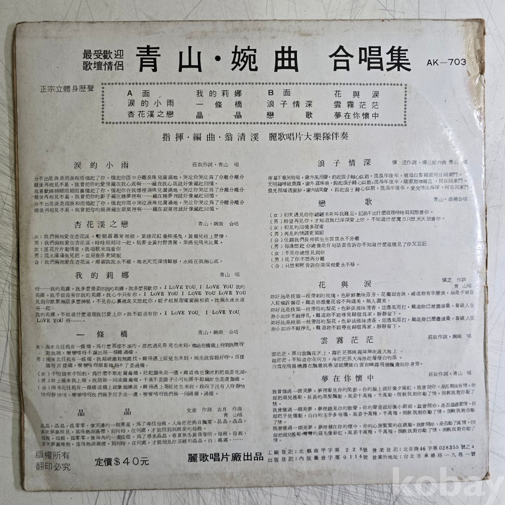 | 자켓상태 | VG : 주름, 접힘, 모서리 찢김 다수 | 음반상태 | VG : 생활 기스 다수, 가벼운 노이즈 존재 | 발매정보 | 초반 | 가사지여부 | 무 |