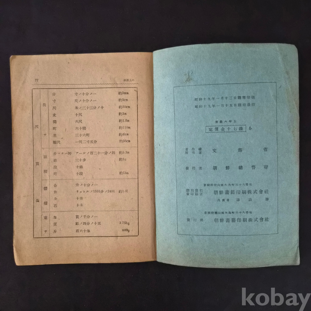 [희귀 근대사 자료] 소화 19년 조선총독부 발행 초등과 산수(은진공립초등학교 제 12소대)