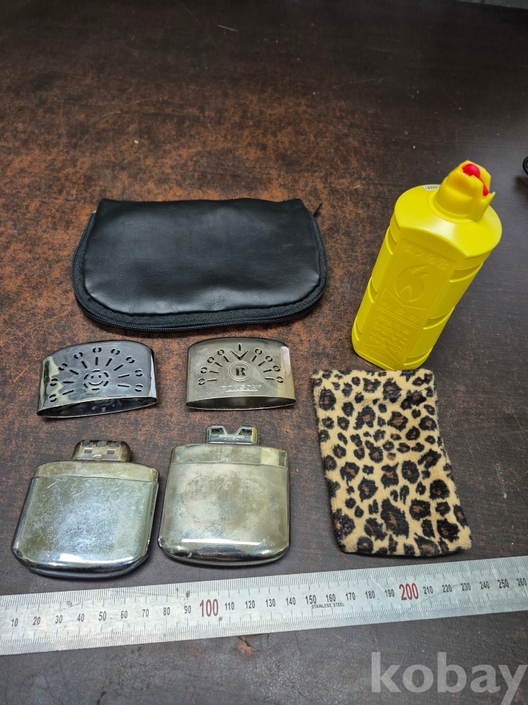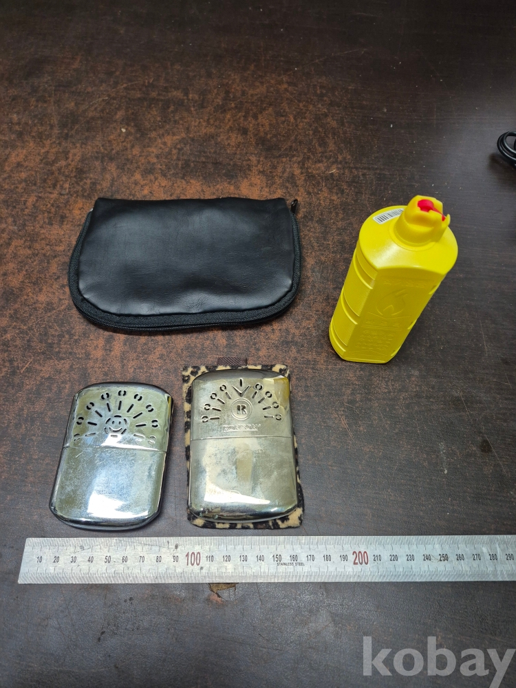 빈티지 구형 손난로 2점 케이스 전용 휘발유 한병 포함 일괄 18*12*2