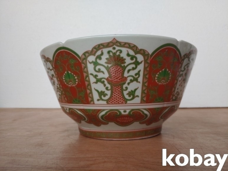 8면에 굴곡이 있는 완 도자기 입니다.