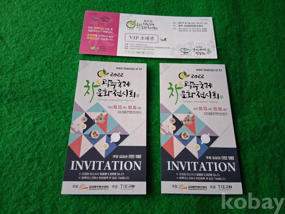 2017, 2022년 광주국제차 문화전시회 초대권 3매