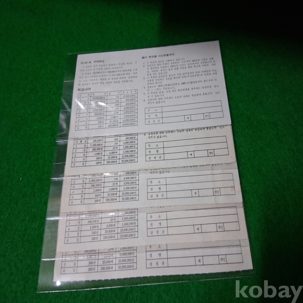 주택복권 5매 사용제 392,393,394,395,397회