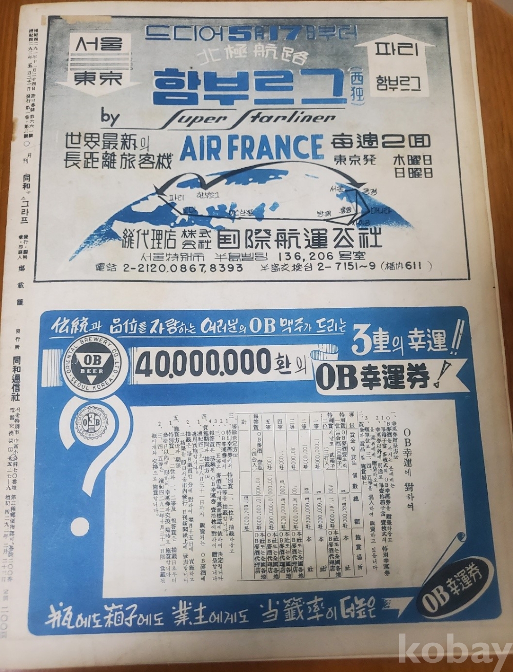 2. 앞표지 모델(발레 쟈닌느 샤라), 뒤표지(국제항운공사, OB행운권)