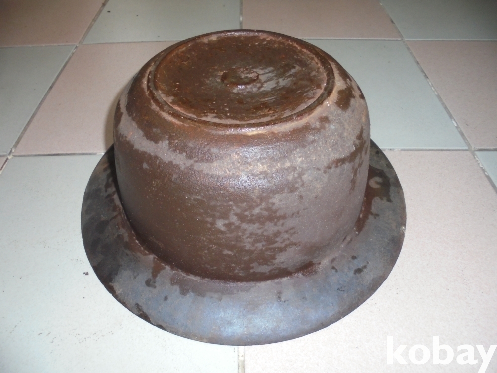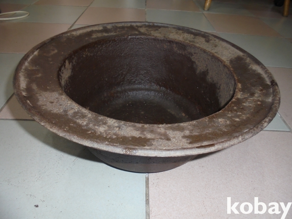 옛날 경상도 양반가에서 사용하던 오래된 때물이좋은 무거운 사랑방 무쇠갓화로 입지름 37 cm 높이 16 cm 외사진참조