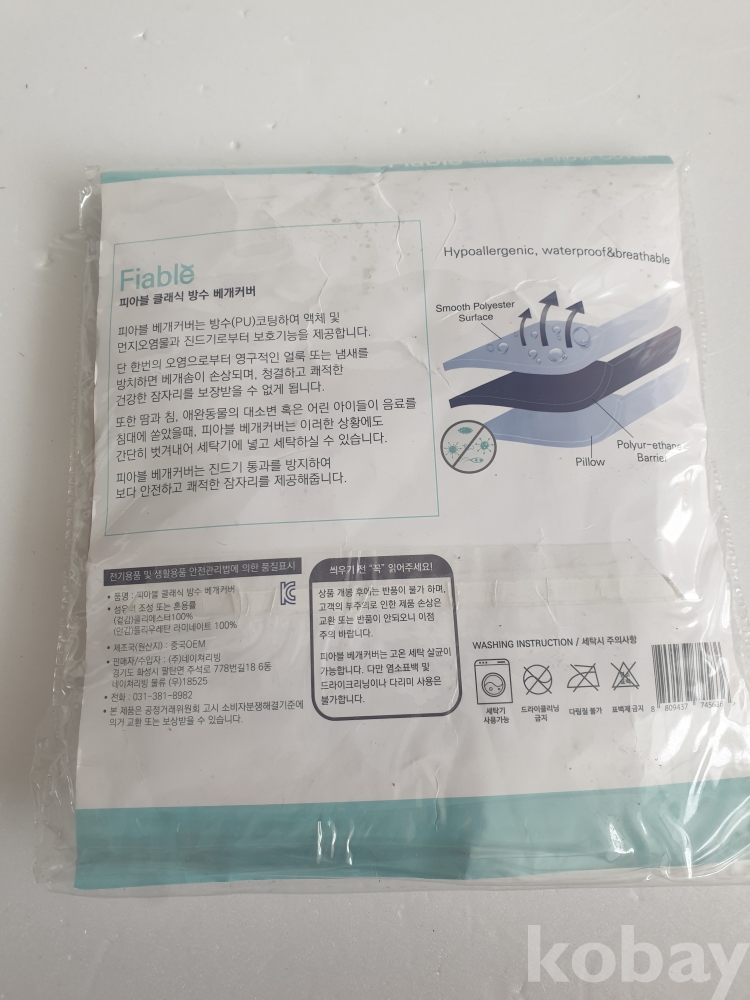 [천원경매] 1-460 방수베개커버(40*60cm, 미개봉제품이나 케이스 훼손있음)