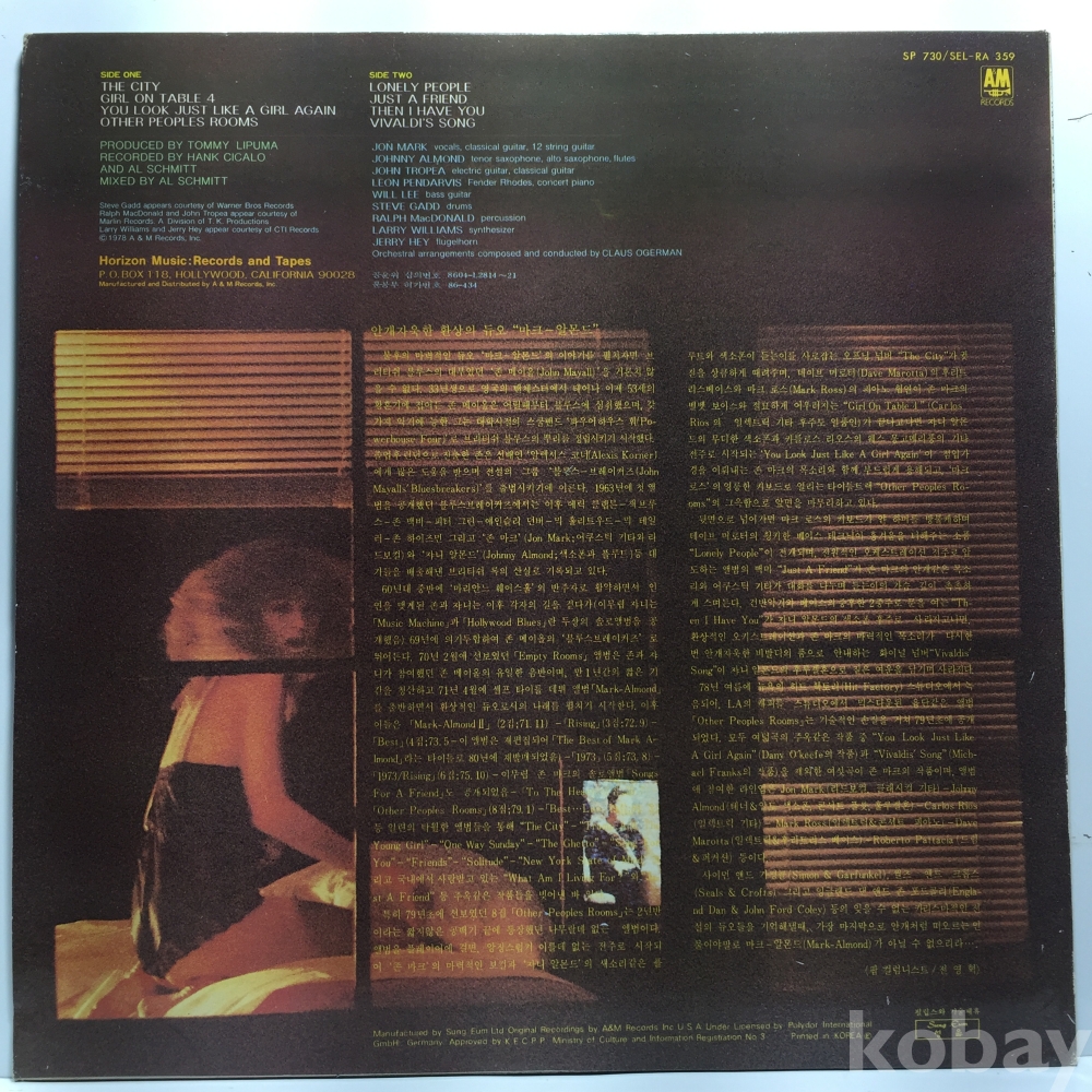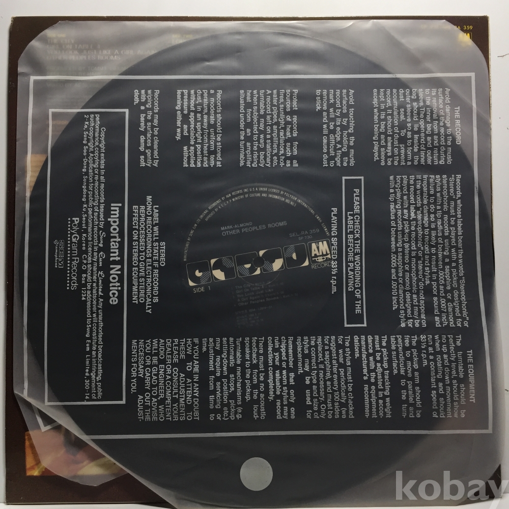 LP 350-61 Mark Almond - Other Peoples Rooms 자켓 EX+ 알판 EX 90 년 국내반